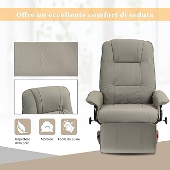 【Facile da usare】La poltrona reclinabile da massaggio è dotata di porte USB e USB-C sul lato, in modo che i tuoi dispositivi elettronici non saranno mai fuori dalla tua zona di comfort. 【Seduta confortevole】 La seduta e lo schienale della sedia elettrica sono progettati con cuscini in schiuma ad alta densità, che non si deformano dopo un lungo periodo di seduta. Questo articolo: LONXIU Poltrona massaggiante, poltrona rilassante con riscaldamento, poltrona relax elettriche con porta di ricarica USB-A e USB-C per camera da letto, salotto, sala studio, Bianco 509,99€ 509 , 99 Poltrona Relax Poltrona Massaggiante Relax Regolabile E Reclinabile A 360° - Riscaldamento E 5 Modalità - Blu Poltrona Camera Da Letto Nel frattempo, le pratiche tasche laterali del power recliner sono progettate per consentire di riporre facilmente riviste, telecomandi o altri elementi essenziali per la massima comodità. Poiché i nostri prodotti sono confezionati sottovuoto, si prega di toccare lo schienale e il cuscino dopo l'installazione per garantire la massima morbidezza sullo schienale della poltrona relax elettrica. L'ampio cuscino offre il massimo comfort per una seduta prolungata. 【Informazioni importanti】La sedia elettrica deve essere assemblata, è possibile seguire le istruzioni di installazione e il tutorial di installazione che vi forniamo. 【Esperienza perfetta】 Lo schienale della sedia elettrica può essere regolato da 90° a 160°, il poggiapiedi può essere regolato da 0° a 90° e può essere bloccato, rendendo questa poltrona relax elettrica molto amichevole per anziani, donne incinte e persone con mobilità ridotta.