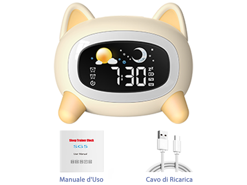 Insegna ai bambini i concetti di quando rimanere a letto e quando alzarsi. 【Servizio Post-vendita Assolutamente Soddisfacente】Se hai domande, contatta direttamente il venditore per risolverle, risponderemo il prima possibile e faremo del nostro meglio per aiutarti. 【Luce Notturna per Bambini con Regolazione della Luminosità e Controllo Vocale per Illuminare lo Schermo】5 colori di luce disponibili: bianco, giallo, blu, viola e verde da selezionare come luce notturna per bambini (con regolazione della luminosità su 3 livelli). Sveglia per bambini,sveglia ricaricabile, sveglia giorno/notte/funzione snooze/luminosità schermo regolabile/7 colori/6 canzoni/spegnimento automatico La musica per dormire può coprire il rumore di fondo, fornendo ai bambini un buon sonno. 【Allenamento al Sonno per Bambini】È ora di alzarsi, è ora di dormire! Orologio Bambina LEMNOI Sveglia Per Bambini, Con 3 Livelli Di Luminosità Regolabili, 5 Tipi Di Luci, 7 Brani Per Il Sonno, Sveglia Ricaricabile Con Funzione Snooze Per Bambini, Con Display Della Temperatura Sveglia Con Proiettore Soffitto Ottima sveglia per bambini per le camere da letto dei bambini e i viaggi. Ad esempio, imposta sveglie diverse per il fine settimana e i giorni feriali, puoi ritardare la sveglia di 9 minuti tramite il pulsante di ripetizione (pulsante superiore). 【Musica per Dormire e Suonerie per Svegliarsi】Scegli tra 7 suoni: 1 rumore bianco, 2 ninne nanne, 4 suoni naturali (il volume della suoneria può essere regolato tra 15 e 60 decibel). 【Batteria a Lunga Durata e Regalo Ideale】Batteria ricaricabile integrata da 2000 mAh, supporta fino a 100 ore di standby e ha una funzione di avviso di batteria scarica. La sveglia digitale può essere impostata in due formati di ora, 12 ore e 24 ore.