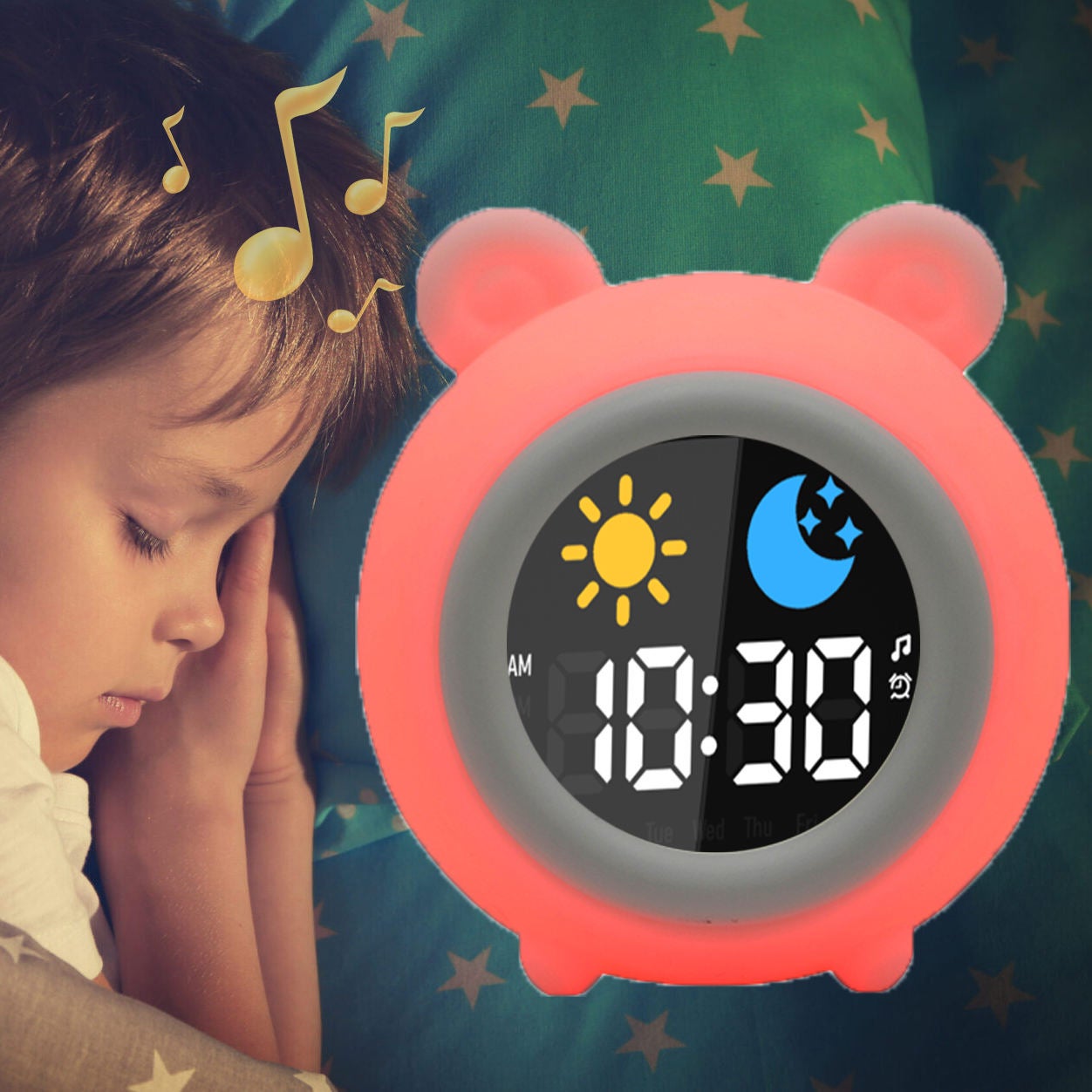 LEMNOI Sveglia Per Bambini, Con 3 Livelli Di Luminosità Regolabili, 5 Tipi Di Luci, 7 Brani Per Il Sonno, Sveglia Ricaricabile Con Funzione Snooze Per Bambini, Con Display Della Temperatura