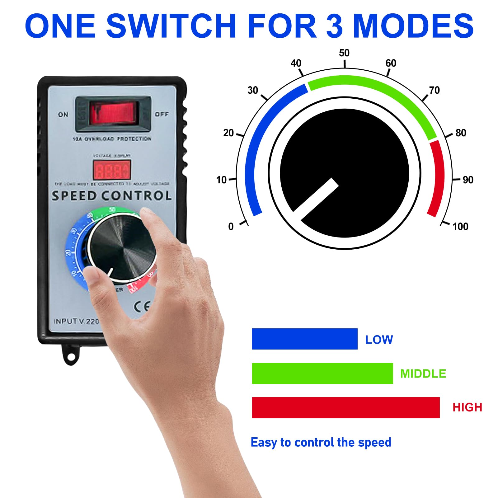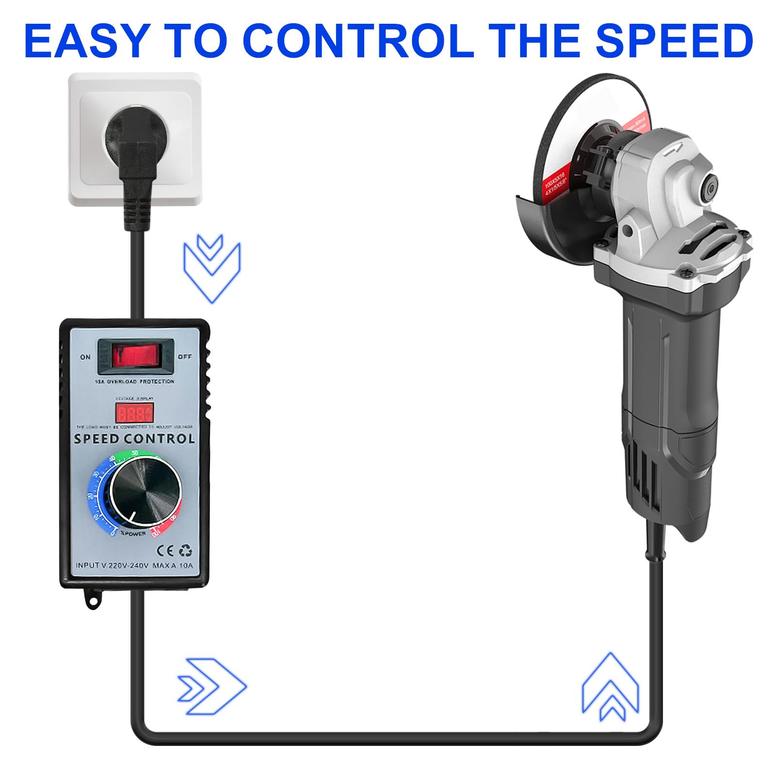 Regolatore Velocità 220v Regolatore Di Tensione 220v Regolatore Di Velocità 0 – 220 V, Per Smerigliatrice Angolare/soffiatore, Trapano A Mano/sega Circolare, Regolatore Di Tensione AC220 – 250 V, Potenza Di Picco 4 KW, Ventilatore Elettrico Smerigliatrice Angolare Velocità Regolabile 【 Prestazioni elevate】Il regolatore di velocità 220 V regola continuamente la tensione, senza isteresi, senza ritardo e con risposta rapida; ma non è adatto per pompe e motori con condensatori o senza spazzole di carbone, che non supportano la riduzione della tensione e la riduzione della velocità. Perché una smerigliatrice ha bisogno di un soft start e di un regolatore di velocit à? Come assemblare un regolatore con le tue mani? Test dei dispositivi elettronici; Collegamento del regolatore alla smerigliatrice angolare ; Installazione del regolatore 【Display ad alta precisione】Questo regolatore di reostato a velocità variabile dispone di un pulsante di controllo di precisione per regolare la tensione con alta precisione. Il regolatore di velocità può soddisfare diversi requisiti di potenza ed è adatto per la maggior parte delle ventole e degli utensili elettrici con spazzole. Il regolatore di induzione può regolare luce, velocità, tensione, temperatura, ecc; è adatto per tubi di riscaldamento, fornelli elettrici, lampade al tungsteno, piccoli motori, saldatori, trapani elettrici, ecc. Ampia gamma di applicazioni: con controllo della velocità, regolazione della tensione, regolazione della temperatura, dimmerazione, ecc. Sicuro da usare: il regolatore di tensione è dotato di una presa multiuso e di un indicatore di potenza, con protezione da sovraccarico, che protegge efficacemente il tiristore ad alte prestazioni da sovratensioni, picchi di tensione e assorbimento RC.