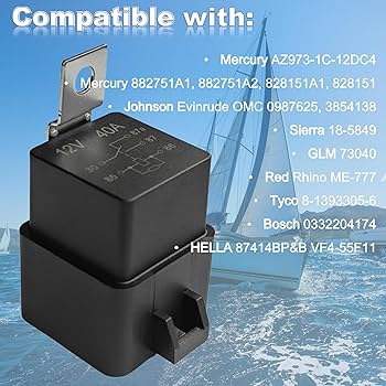 Replace: 882751A1, 3854138, 73040, 828151,828151A1. Power:12V Current:40AFits many outboard power tilt and trim units. 882751A2, HELLA 87414BP&B VF4 55F11. 12V 40A Power Trim Relay for Mercury Mariner 30 40 50 60 115HP Outboard 882751A1 Materiale: plastica + stent metallo Colore: nero Adatto a molte unità di inclinazione e trim fuoribordo come Mercury/Force/CMC/MCM/MIE/Verado Modello: 429933 Mercury Motore Fuoribordo Power Trim Tilt Relay For Mercury Outboard Motor Replaces For 882751A1 Motore Mercury (1 pollice = 2,54 cm)Pacchetto incluso: 1X relè + stent L'installazione professionale è altamente raccomandata Si prega di controllare attentamente la tabella delle misure prima di effettuare il pagamento Si prega di consentire 0.5-1 pollice differenza a causa della misurazione manuale.