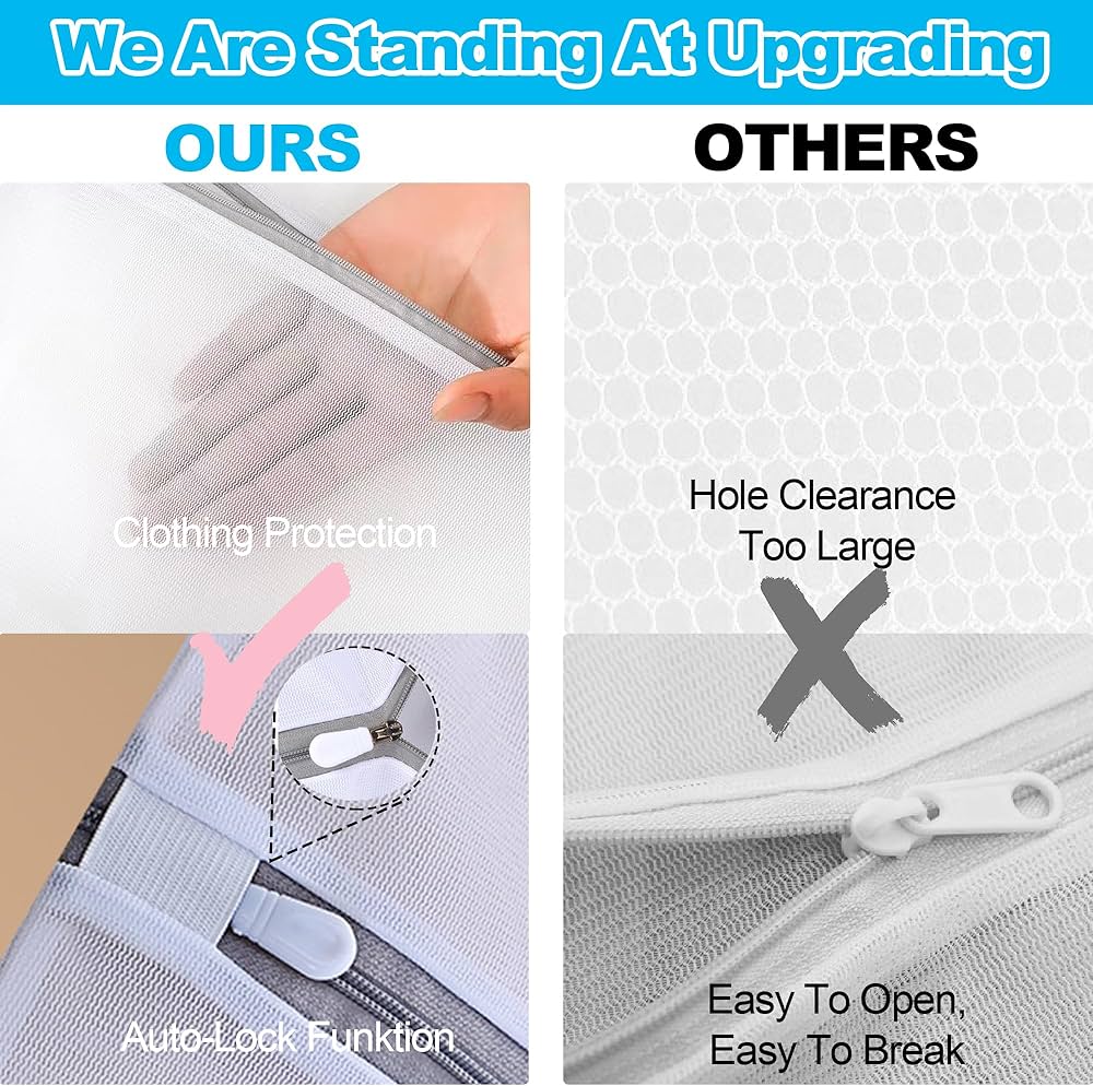 [COMFORT E SICUREZZA]- la cerniera dei nostri sacchetti è protetta da un elastico che ne impedisce l'apertura durante il lavaggio, in modo che i capi rimangano nella borsa. La loro struttura a rete fine consente un lavaggio profondo; set di 2 misure: M (30*40 cm) e S (24*30 cm) Sacchetti Lavatrice Biancheria 3 Pezzi Rete Da Bucato Resistente Per Lavatrice - 100% Poliestere 100 G Sacchetti Per Scarpe Lavatrice Proteggete i vostri capi sporchi in lavatrice con le nostre reti per bucato. [PROTEGGI I TUOI CAPI]- I nostri sacchetti per il bucato proteggono i tuoi capi fragili: seta, lana, scarpe sporche durante il lavaggio in lavatrice. [GARANZIA] Non aspettate oltre per approfittare della morbidezza e della qualità dei nostri sacchetti per il bucato per proteggere la vostra biancheria intima (reggiseno, mutandine), calze, tende, collant, ecc. Sacchetti per bucato in rete, 3 sacchetti per lavatrice resistenti per delicati, camicette, sacchetti per biancheria intima, scarpe, ecc Sarete felici di riavere i vostri calzini come nuovi! DESIGN OTTIMALE: Le nostre reti sono realizzate in poliestere da 100 g/m² per garantire una grande durata; le cerniere di alta qualità assicurano che i vestiti rimangano nel sacchetto durante il lavaggio CONTENUTO DELLA CONFEZIONE: 1 sacchetto da 30*40 cm e 2 sacchetti da 24*30 cm con maniche Non aspettate oltre, ve ne innamorerete! [PRATICI] - Possono essere utilizzati anche per riporre biancheria intima o vestiti per bambini nella valigia per 1 viaggio; la maniglia aiuta ad appendere per asciugare o riporre; il formato 30*40 può essere utilizzato per riporre giochi e giocattoli per bambini o frutta e verdura.