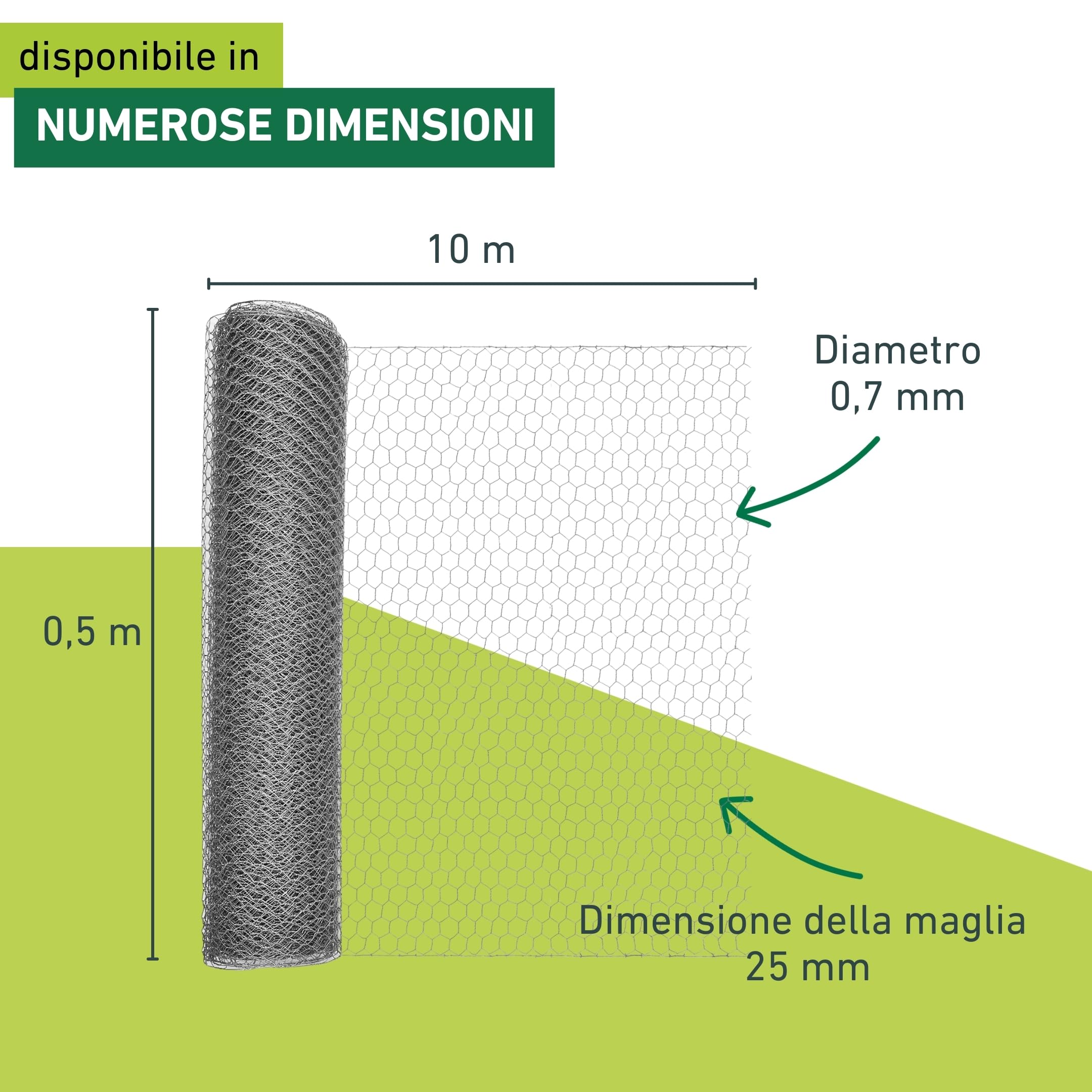 Compra Crihovy Rete Metallica per Recinzioni, Rete Zincata 0.4 x 10m, Rete Pollaio, Rete per Polli, Maglia Esagonale con 100 Pezzi di Fascette in Nylon, per Animali, Piante, Pollame, Decorazioni per la Casa a prezzi vantaggiosi su . Spedizione Gr 【Per il Fai da Te】 Il rete per polli può essere utilizzato anche per realizzare oggetti di artigianato domestico, come cornici per ghirlande natalizie, pareti per foto, cornici, supporti per gioielli, sfondi per matrimoni, vasi di fiori, gabbie, ecc. 【Specifiche del Prodotto】 Il rete metallica per recinzione include 1 pezzo di rete metallica, 100 fascette per cavi, 1 paio di guanti protettivi e 1 mini pinza. 【Materiale di Alta Qualità】 Il rete metallica per recinzioni è realizzato in filo di ferro zincato a caldo, con uno strato protettivo di zinco sulla superficie per prevenire la ruggine, migliorando notevolmente la resistenza agli agenti atmosferici e la durata del materiale, rendendolo adatto per l'uso esterno a lungo termine . Puoi tagliarlo in diverse forme in base alle tue esigenze. Rete Zincata Metallica Rete Metallica Per Recinzioni Rete Zincata Elettro | Rete Metallica Per Rete Zincata Elettrosaldata Prezzo La dimensione specifica del rete zincata è 0,4×10 m, la dimensione della maglia è 15×25 mm e il diametro del filo è 0,5 mm.