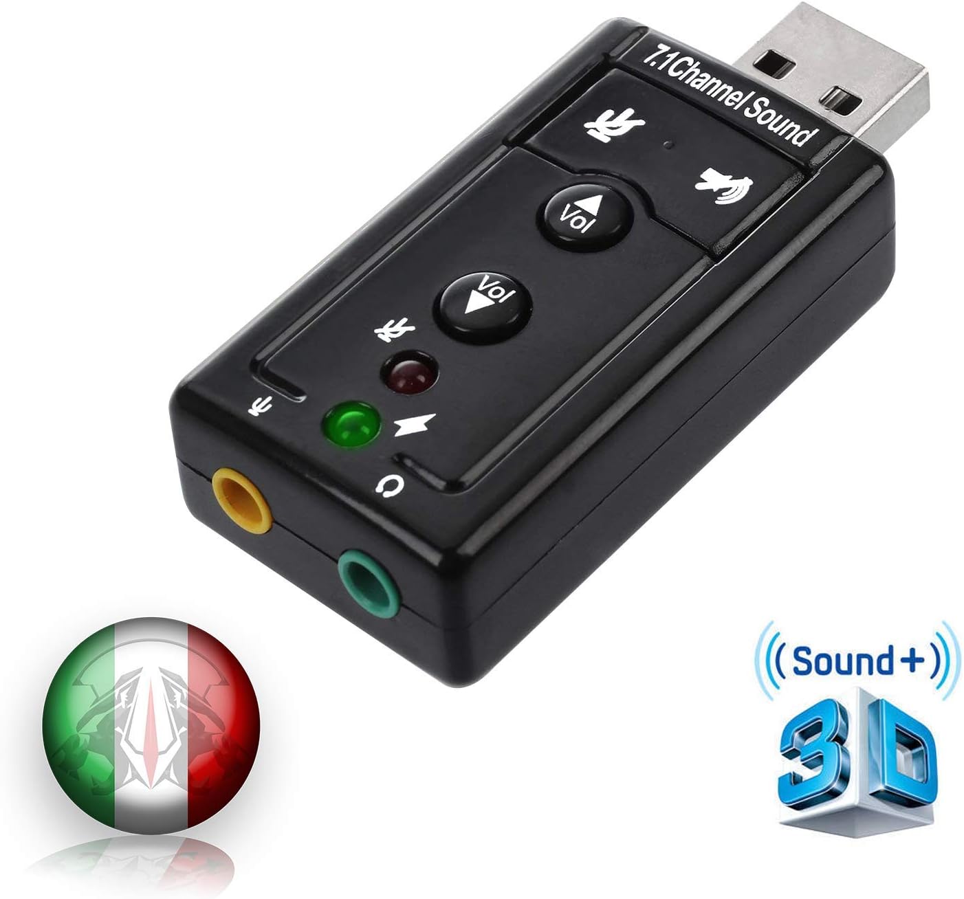 Cavo di alimentazione USB, Uscita SPDIF, uscita frontale, uscita posteriore e uscita CEN/BASS consentono di collegare altoparlanti o altri dispositivi audio. Specifiche tecniche: Supporta: AES/EBU, IEC60958, S/PDIF, Compatibile con i sistemi: XP/VISTA/WIN7/WIN8/Mac OS9.1, Dimensioni: 90 x 68 x 20 mm. Vari ingressi e uscite La scheda audio esterna offre una vasta gamma di ingressi e uscite, che consente di collegare una varietà di dispositivi audio al computer. Versatilità: Questa scheda audio offre una varietà di ingressi e uscite ed è quindi compatibile con una vasta gamma di dispositivi audio. Compatibilità: Soundbox 7.1 5.1 L'adattatore è compatibile con molti sistemi operativi comuni e include un CD con driver che garantisce un'installazione facile e veloce del dispositivo. Inoltre, questa scheda audio offre molte funzionalità avanzate, come: Riduzione del rumore, in modo da poter godere di un suono puro e chiaro. Forma compatta La scheda audio blu è caratterizzata da dimensioni compatte di soli 9x6,8x2 cm. Connettori OUT: uscita Spdif, uscita anteriore, uscita posteriore, uscita CEN/BASS Contenuto del kit: Scheda audio 5.1 7.1, CD del driver, Che tu sia un professionista o un hobbista, il sistema audio offre comfort e praticità. Supporto di frequenze multiple - Questa scheda audio 5.1 offre il supporto per un'ampia gamma di frequenze di campionamento, tra cui 32 KHz, 44,1 kHz e 48 KHz, sia per la registrazione del suono in formato didital, analogico, sia per la riproduzione del suono in entrambi i formati. Indipendentemente dal sistema utilizzato, puoi essere certo che le schede audio funzioneranno senza problemi e un suono surround realistico quando guardi un film o ascolti musica. Alta qualità L'amplificatore per cuffie offre un'eccellente qualità del suono, garantendo così un'esperienza straordinaria durante l'uso. Surround 5.1 Retoo Scheda Audio Esterna 7.1 Surround, Adattatore Audio Stereo, Regolazione Del Volume, Connettore Per Cuffie, Microfono, Disattivazione Microfono Per PC Scheda Audio Esterna Usb A questo proposito, la scheda audio 5.1/7.1 spicca come soluzione che non solo offre un'eccellente qualità del suono, ma offre anche multifunzionalità e flessibilità nell'utilizzo di vari dispositivi audio. Compatibilità con diversi sistemi operativi: Questa scheda audio è compatibile con diversi sistemi operativi comuni. Grazie alla funzione audio multicanale, potrai godere di un suono spaziale ricco che affina il realismo dei tuoi contenuti preferiti. Descrizione Consente di trasformare rapidamente il vostro laptop / PC in un sistema Home Theater. Questa versatile scheda / adattatore audio USB esterna offre una soluzione di alta qualità per potenziare il sistema audio del computer desktop o laptop L'ingresso Mic-In consente di collegare un microfono, mentre gli ingressi Spdif-In e Line-In consentono di collegare altre sorgenti audio. Supporto di frequenze multiple Questa scheda audio 5.1 offre il supporto per un'ampia gamma di frequenze di campionamento, tra cui 32 KHz, 44,1 kHz e 48 KHz, sia per la registrazione del suono in formato didital, analogico, sia per la riproduzione del suono in entrambi i formati.