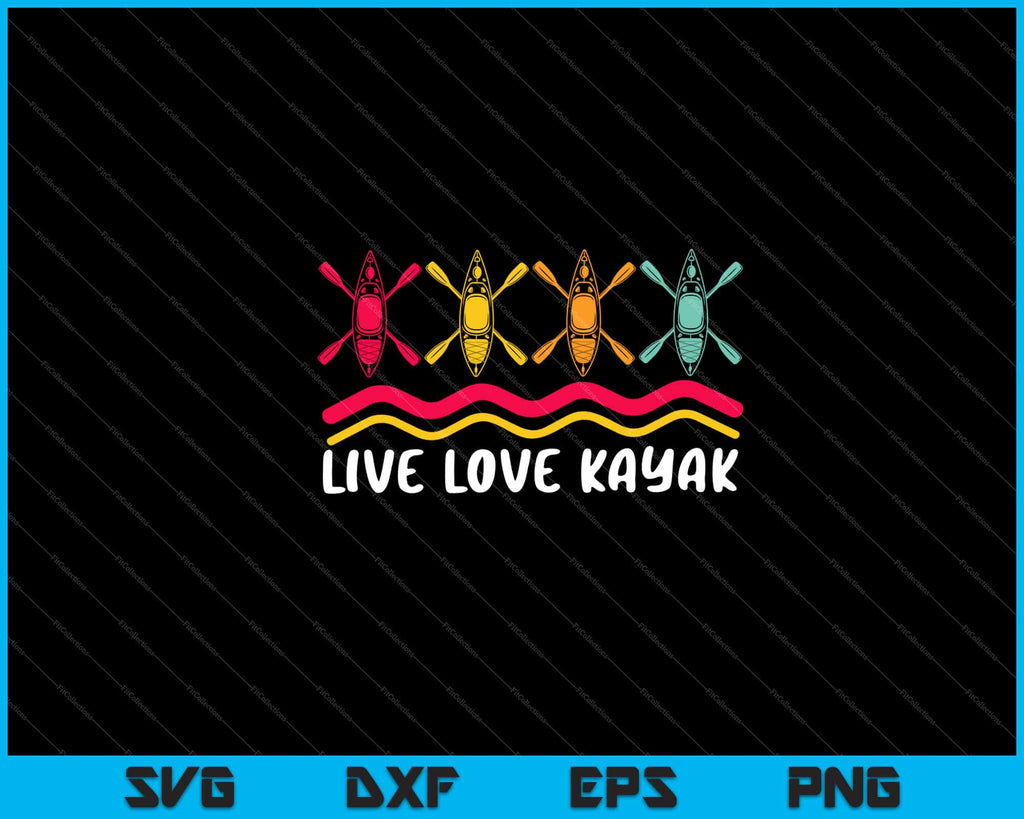 Retro Style Kayak Boats Kayaking Paddling Live Love Kayak T-Shirt Black