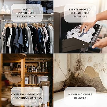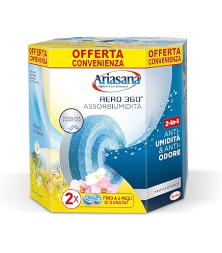 CARATTERISTICHE TECNICHE: Il deumidificatore è realizzato con calcium chloride (cloruro di calcio), un composto naturale altamente efficace nell'assorbire l'umidità dall'aria. Ariasana Assorbiumidita SET 3 Ricariche 450 Gr (1,35 Kg) Assorbi Umidità Anti Odore Ricarica Assorbi Umidità Armadio I sali inizieranno a sciogliersi dopo una durata di tempo variabile che dipende dalla dimensione dell'ambiente in cui la vaschetta è posizionata e dal grado di umidità presente, per lo stesso motivo la durata degli stessi è variabile. Tenere fuori dalla portata dei bambini. Compra SET 3 ricariche 450 gr (1,35 kg) assorbi umidità anti odore ricarica vaschette deumidificatore sali per bagno cucina camper caravan roulotte ripostiglio dispensa armadio - INODORE. SPEDIZIONE GRATUITA su ordini idonei INGREDIENTS: Calcium chloride, dihydrate*la ricarica contiene circa 450g di sali sufficienti a ricaricare circa 3 vaschette da 400ml Togliere le eventuali lenti a contatto se è agevole farlo. Continuare a sciacquare. 3 Ricariche IRGE 450 g per vaschette Assorbi Umidità - ANTI UMIDITÁ - ANTI ODORE Ideale per ogni ambiente della casa: in cucina, in bagno, in armadi, scarpiere, mobili e armadietti per prevenire ed evitare la formazione di muffa e odore di chiuso dovuti all'umidità. 👍 SEMPLICE DA USARE: è sufficiente svuotare dal liquido una vaschetta usata e riempirla nuovamente con questi sali, sarà subito pronta ad essere riutilizzata! IN CASO DI CONTATTO CON GLI OCCHI: sciacquare accuratamente per parecchi minuti. Si raccomanda di non disperdere il contenuto nell'ambiente, per garantire un uso corretto e sicuro.MODO D'USO 1. Togliere il coperchio della vaschetta2. Svuotarla dal liquido formato dal precedente utilizzo effettuando un piccolo taglio nella membrana in tessuto3. Tagliare un angolo del sacchetto della ricarica e versare i cristalli nel deumidificatore. Quando il deumidificatore ha assorbito tutta l'umidità, il cloruro di calcio si trasforma in una soluzione salina che può essere facilmente smaltita nel lavandino o in uno scarico, rendendo il prodotto sicuro e facile da usare. Non lasciare i sacchetti aperti, utilizzare sempre l'intera ricarica (è sufficiente per circa 3 vaschette Assorbi Umidità IRGE da 400 ml)4. Richiudere il coperchio della vaschetta, in questo momento il prodotto inizia ad agire assorbendo l'umidità in eccesso5. Quando l'azione deumidificante termina, rimuovere il coperchio e smaltire il liquido formatosi nel WC o nel lavandino e sostituire i sali Posizionare il contenitore lontano dalla portata dei bambini. Questo prodotto non è utilizzabile da solo: è necessario versarlo in vaschette assorbi umidità già esaurite. Leggere l'etichetta prima dell'uso. 🏠 ADATTE AD OGNI AMBIENTE: posiziona le vaschette in tutti gli angoli umidi della casa, del garage o box auto, in cantina 👟 NELLE SCARPIERE: assorbiranno l'umidità delle scarpe impedendo lo sviluppo di cattivo odore