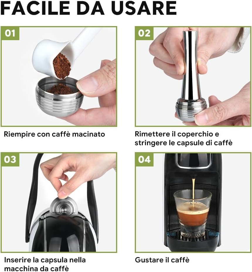 RECAPS Strumento di riempimento pressino caffè espresso in acciaio inossidabile compatibile con cialde originali Vertuoline da 45 mm Tappetino Macchina Caffe RECAPS Strumento Di Riempimento Del Pressino Per Caffè Macina Caffè 1.Materiale in acciaio inossidabile, sicuro, non tossico, protezione ambientale 2.Può essere utilizzato ripetutamente, nessun materiale di scarto aggiuntivo 3.Conveniente da impugnare e premere 4.Compatibile with Dolce Gusto e filtro ricaricabile in acciaio inossidabile per Vertuoline, diametro 41,8 mm 5.Articolo incluso: 1 * Tamper per caffè