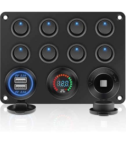 Dimensioni 3 gang: 55 x 104 x 68 mm. Pannello interruttori a 3/4/5/6/8: questo prodotto ha opzioni di interruttore a 3/4/5/6/8, che possono controllare gli interruttori di apparecchi elettrici 3/4/5/6/8 allo stesso tempo, è possibile scegliere quello appropriato in base alle proprie esigenze. Dimensioni 4 gang: 83 x 121 x 64 mm. IN STOCK: Interruttore combinato a 4 posizioni per auto, camper, yacht, 12 V-24 V universale, adatto per barca, camper, auto, camion, rimorchio, yacht, impermeabile IP65, THIT05480 al miglior prezzo. Consegna rapida in tutta Italia Colore chiaro: Verde, Blu, Rosso Temperatura di funzionamento: da -25 °C a 80 °C. Potenza massima: 240 W. Colore del prodotto: nero. Pulsantiera Barca Riloer Pannello Interruttore Combinato A 3/4/5/6/8 Gang, 12 V Barca Da Pesca Interruttore a bilanciere: il design dell'interruttore a bilanciere rende il dispositivo di controllo più conveniente, con display a LED è più sicuro da usare di notte. Gamma di rilevamento voltmetro: 6-30V Corrente di uscita: 10A 20A Classe di protezione: IP65. Contenuto della confezione: 1* Pannello interruttore a bilanciere e viti e adesivo Dimensioni 5 gang: 154 x 68 mm. Multifunzionale: l'interruttore a bilanciere può essere utilizzato come interruttore per fari, interruttore per fendinebbia, interruttore per luce ad ampia visione, interruttore per frigorifero auto, interruttore aspirapolvere auto, apparecchiature esterne per auto per alimentare e alimentazione per telefoni cellulari, tablet, ecc. È adatto per la modifica dell'interruttore di auto, camper, yacht, navi da crociera, autovetture, ecc.