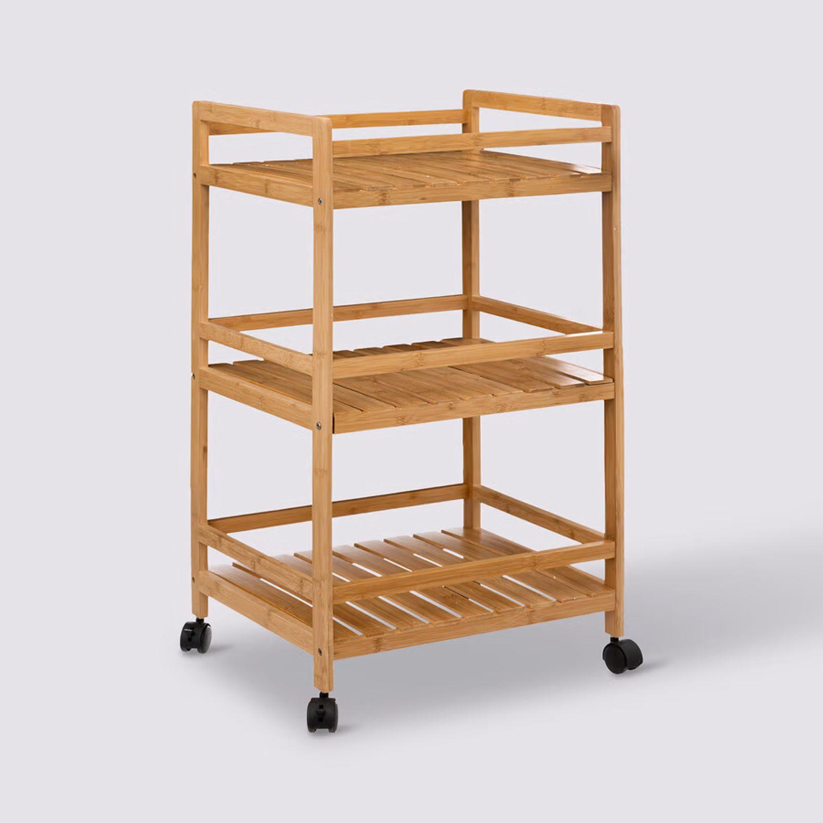 MEEDEN Arte Scaffalatura Legno, 3 Ripiani Carrello Con Ruote Portatutto, Studio Carrello Cucina Legno Carrello Bagno In Legno Di Faggio - Noce