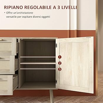 Mobiletto Salvaspazio Il Numero 1 Del Risparmio-MOBILE MULTIUSO STILE VINTAGE IN LEGNO CON Due Ripiani Interni 60x30x76cm Isola Cucina STILE VINTAGE: Questa credenza in legno naturale è dotato di maniglie in tonalità bronzo sulle ante che offrono uno stile retrò. homcom Credenza per Soggiorno Mobile multiuso Stile vintage per Cucina con 2 Ripiani interni, in Truciolato, 60x30x76cm, Color Legno. Scritto da il 13. Ottobre 2023 SPAZIOSO: Grazie a un ampio piano d'appoggio e un armadio con mensole a due livelli con ante, la credenza offre molto spazio per posizionare ciò che si desidera, come stoviglie, bicchieri, libri, piante e altro ancora. Inoltre, quattro gambe in legno di pino garantiscono una corretta stabilità. DIMENSIONI: Dimensioni generali: 60L x 30L x 76A cm. MATERIALE DI QUALITÀ: La struttura del mobile da salotto è in MDF con rivestimento melaminico per offrire una maggiore robustezza e facilità di pulizia. Inoltre, le pedane antiscivolo sul fondo impediscono che il pavimento venga danneggiato.