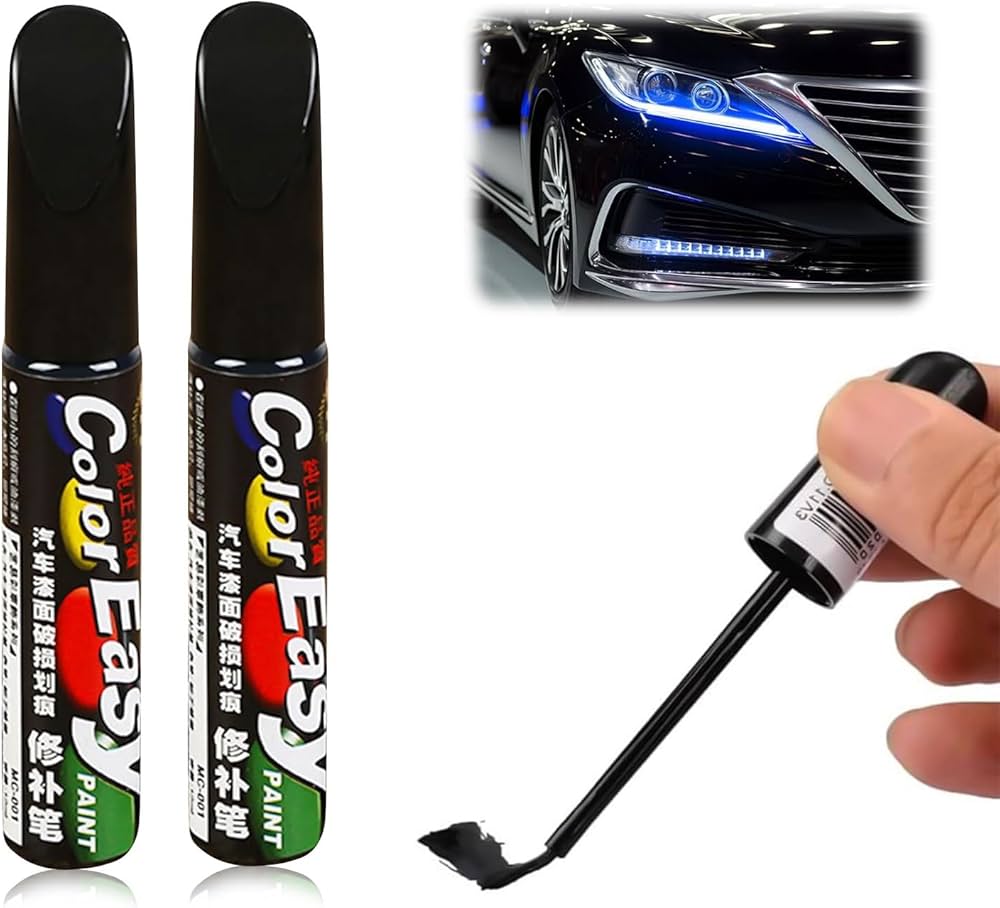 Anseom Penna Per Ritocco Auto Nero, 2Pcs Penna Per Riparazione Graffi Auto Colorfast Penna Ritocco Carrozzeria, Universale Pennarello Per Vernice Per Ritocco Di Auto 12ml