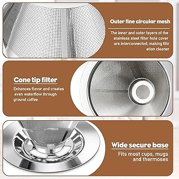 【Adattamento Perfetto】Il nostro filtro caffe americano è dotato di una base con un diametro di 9,8 cm, adatta alla maggior parte delle tazze, tazze e thermos. Il filtro caffe aiuta a estrarre i componenti essenziali del caffè, evita l'interferenza del gusto della carta che può essere causata dai materiali del filtro di carta e migliora il sapore del caffè. Le migliori offerte per Filtri Caffe Riutilizzabile, Filtro Caffe Americano, Filtro per Caffè in Acciaio sono su Confronta prezzi e caratteristiche di prodotti nuovi e usati Molti articoli con consegna gratis Lavazza Cialde Filtri Caffe Riutilizzabile , Filtro , Filtro Caffe Americano La dimensione del filtro per il caffè in acciaio inossidabile è di 11 cm * 6,5 cm, sufficiente per preparare da 1 a 2 porzioni di caffè alla volta e garantire che la tazza sia stabile e non si ribalti. Il il filtro per il caffè è anche un regalo perfetto per gli amanti del caffè versato a mano. Dopo la pulizia, mettilo in un luogo ventilato e fresco per asciugarlo e mantienilo pulito e fresco ogni volta che lo usi. 【Ampia Applicazione】I nostri filtro da caffè permanente sono adatti a varie attrezzature per la preparazione del caffè, come caffettiere, macchine per il caffè e varie tazze, e possono essere utilizzati a casa, in ufficio, nei bar, ecc. 【Materiale Qualità】Il nostro filtri caffe americano è realizzato in acciaio inossidabile 304 di alta qualità, che ha un'eccellente durata e resistenza alla corrosione ed è durevole.