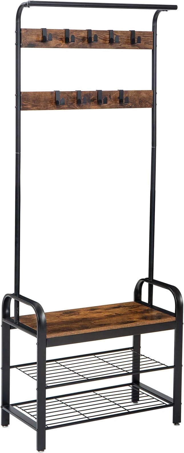 Robusto Appendiabiti In Legno, Appendiabiti Moderno Autoportante, Appendiabiti Da Terra, Appendiabiti Da Ingresso Con Base Rotonda Per Camera Da Letto-Noce 173 * 38 * 38 Cm