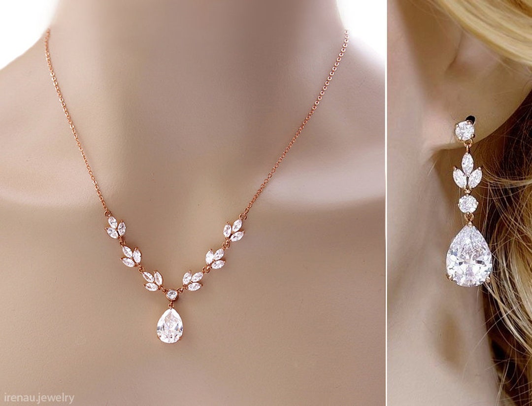 Set Di Collana E Orecchini Rosa, Collana Di Cristallo Rosa Chiaro, Set Di Collana Da Damigella D'onore Rosa Pastello - Italia