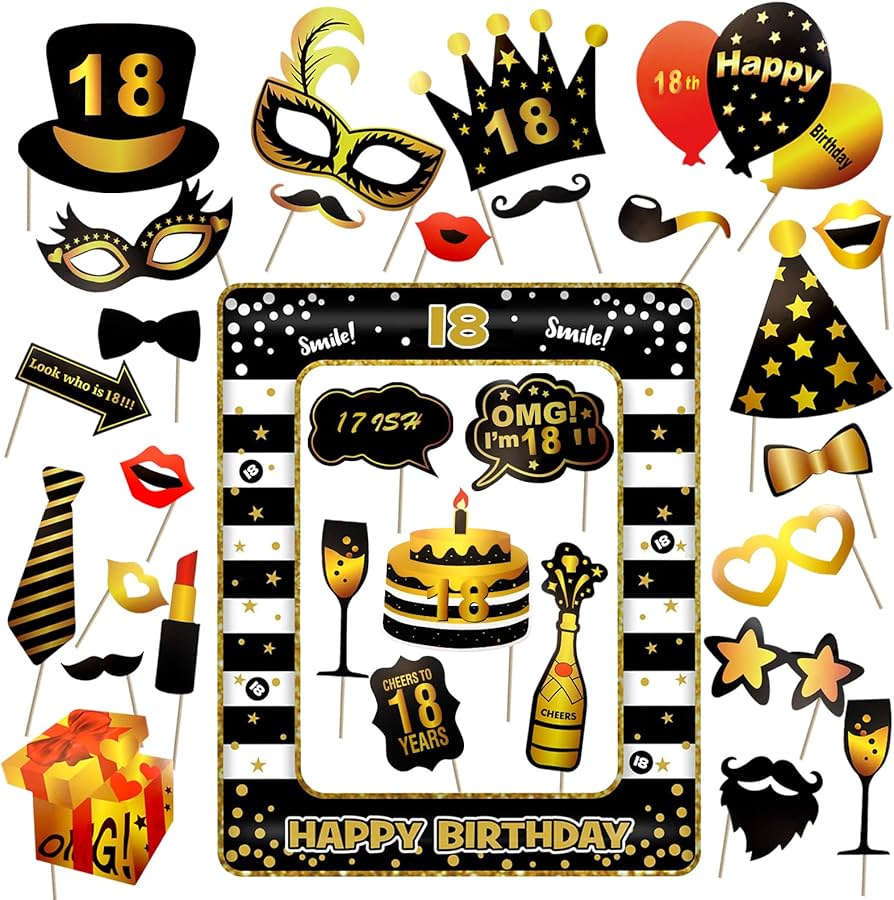 Photo Booth TOAOB 34 Pezzi Props 30 Anni Compleanno Rosa Cornice Gonfiabile Per Selfie Divertenti Accessori Decorazioni Per Fai Da Te Happy Birthday Party Fotografica Puntello Occhiali Anni 50