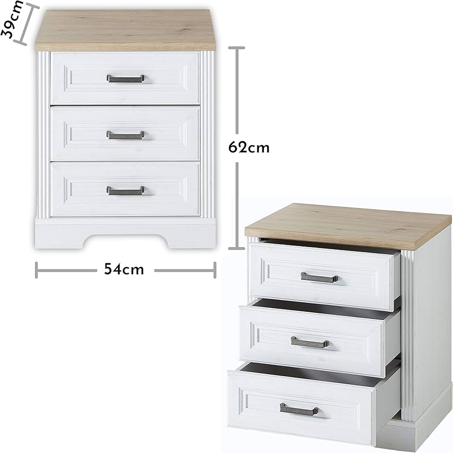 JASMIN - Cassettiera Con Rotelle In Legno Di Pino Chiaro, Effetto Quercia Artisan, Mobile Da Ufficio Con 3 Cassetti, Stile Rustico, Set Completo, 54 X