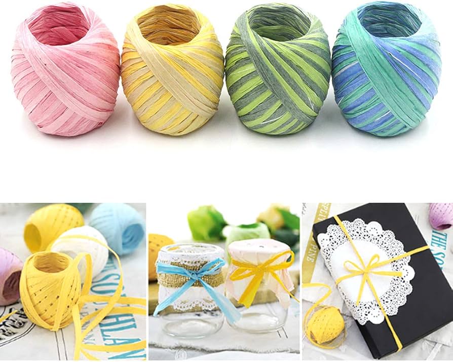 Rotolo Rafia Colorata , 4 Rotoli Di Corda Rafia, Colore In Carta Rafia, Corda Per Natale, Confezione Regalo, Decorazione Tessitura, Fiorista, Confezione Di Spago, 3 Cm X 20 M Nastro Di Carta Rafia