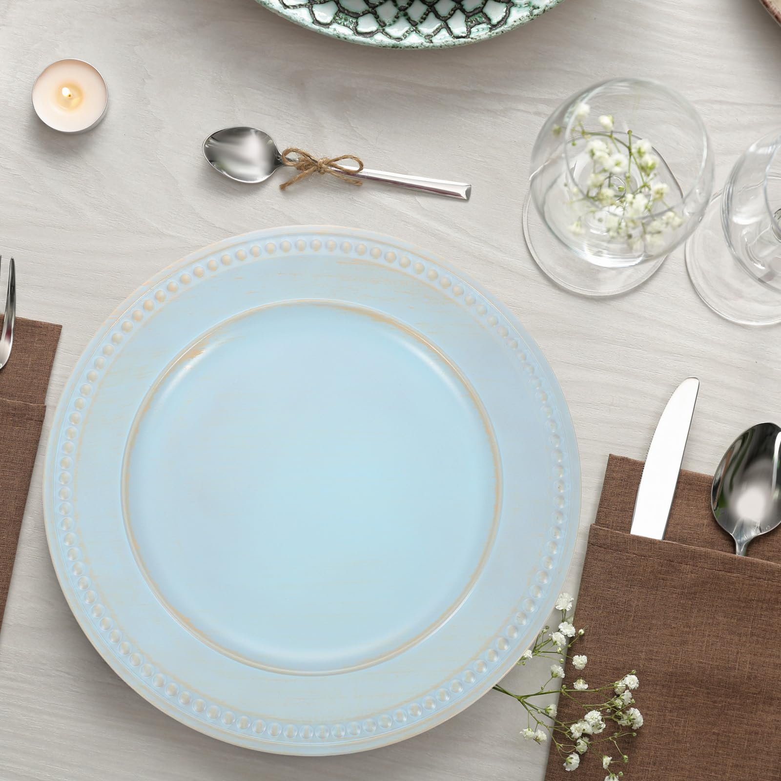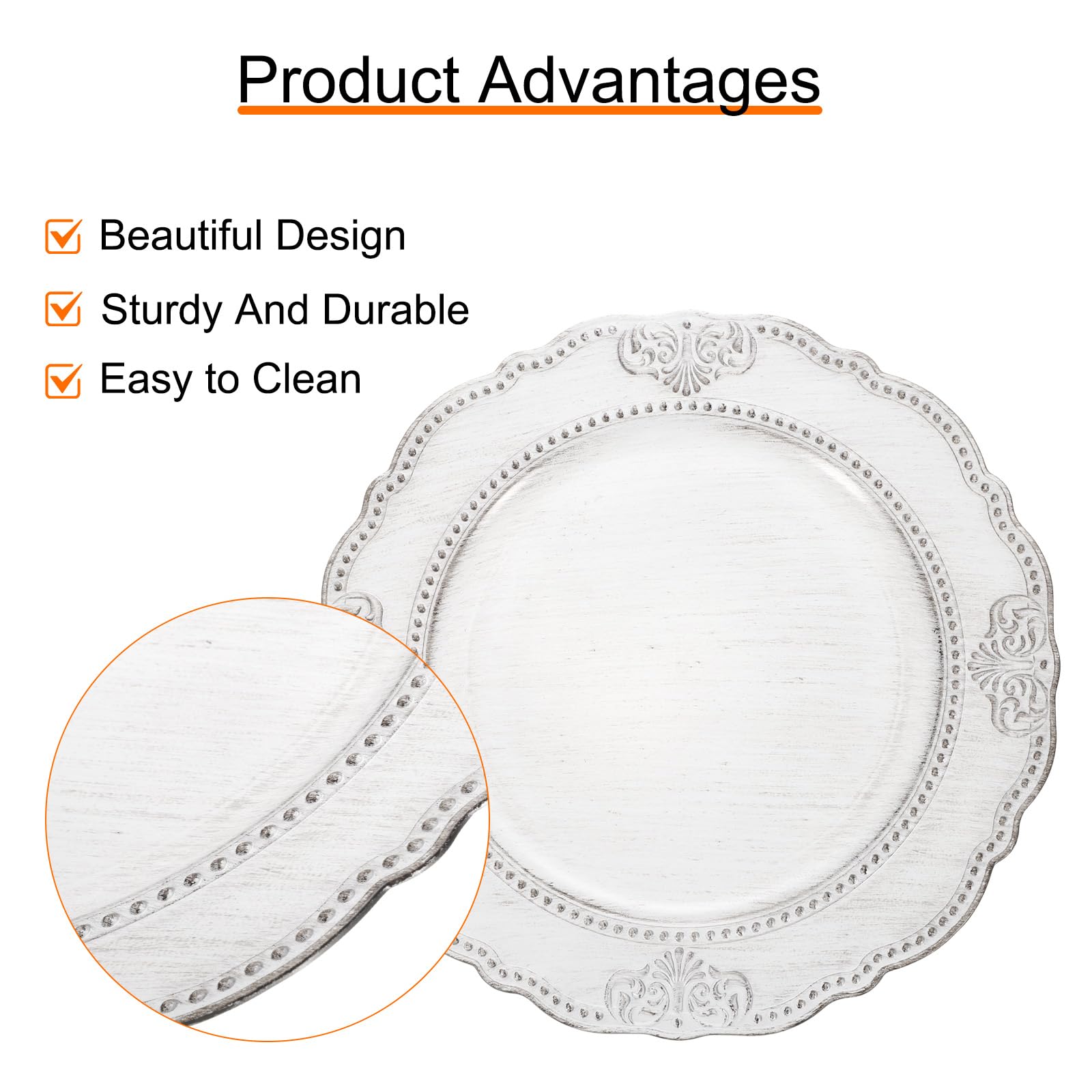 sourcing map 10 sottopiatti vintage sfusi, 33 cm, in plastica, con perline decorative per piatti piani, set di piatti rotondi, per feste di nozze, eventi, decorazione da tavolo, bianco Non occupano molto spazio sul piano di lavoro o sul tavolo da pranzo e si possono impilare quando non in uso. Buon materiale: questi caricabatterie per piatti sono realizzati in plastica con motivo floreale, superficie strutturata, leggeri e robusti, e nessun odore sgradevole, lavabili e riutilizzabili, e non si rompono o sbiadiscono, la pregevole fattura e il design elegante attireranno rapidamente l'attenzione degli altri. Set di piatti piani: Contenuto della confezione: 10 piatti di ricarica con perline blu; con ogni caricabatterie misura 33 cm di diametro, e la quantità sufficiente e le dimensioni adatte possono soddisfare le vostre esigenze quotidiane; si adattano bene sotto vari piatti da insalata e piatti piani. Dopo l'asciugatura, metterli via. Piatti Vintage StarLuckINT 6 Pezzi Sottopiatti In Plastica Con Perline, In Plastica Da 13, Piatti Decorati Eleganti, Per La Decorazione Della Cena Di Eventi Di Nozze Per Feste (Color : Silver Sottopiatti Rotondi Facile manutenzione: questi piatti non sono adatti al microonde o alla lavastoviglie, basta lavarli sotto l'acqua di risciacquo e assicurarsi di utilizzare un panno morbido.