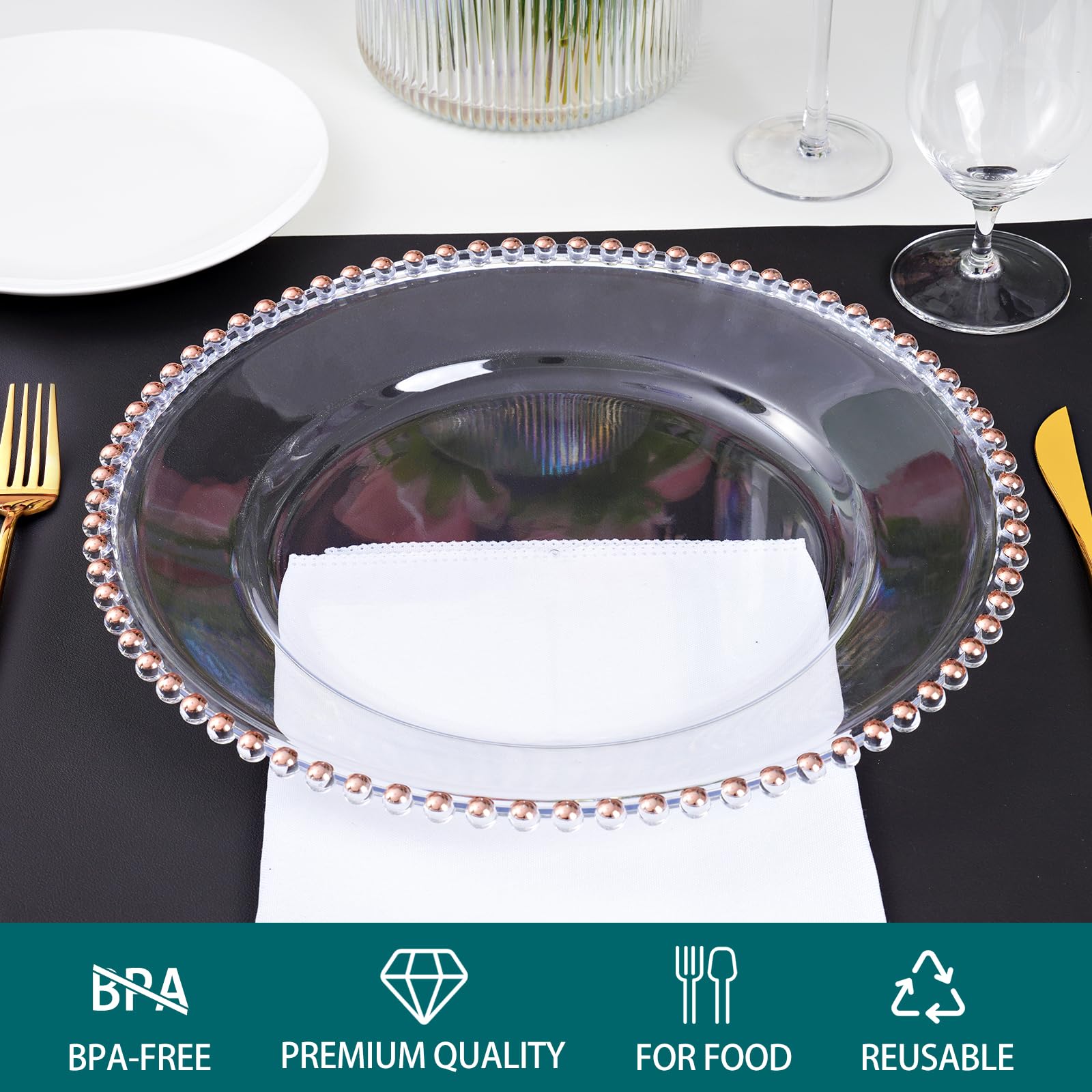 StarLuckINT 6 Pezzi Sottopiatti In Plastica Con Perline, Sottopiatti Rotondi In Plastica Da 13, Piatti Decorati Eleganti, Per La Decorazione Della Cena Di Eventi Di Nozze Per Feste (Color : Silver