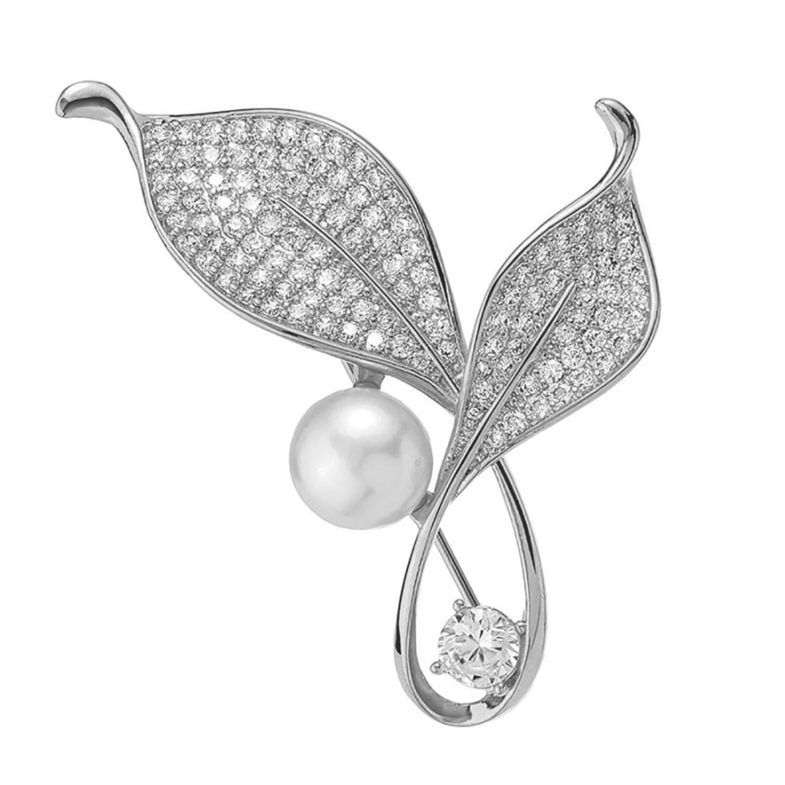 Semplice Violino Rotondo Perla Spilla Di Strass Di Cristallo Delicato