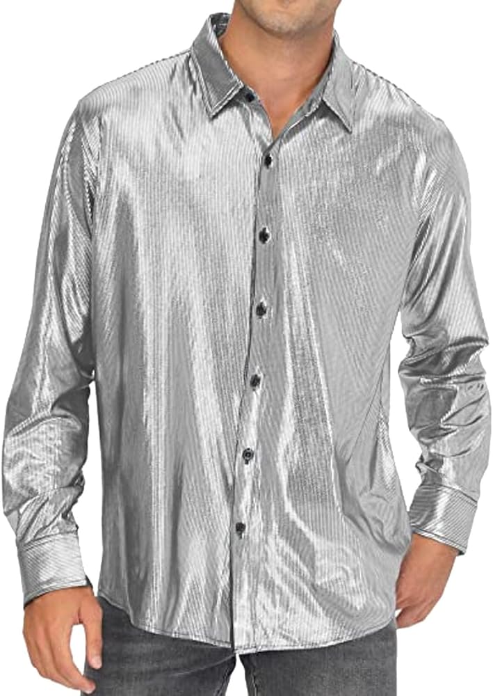 Rrongwn Camicia Da Uomo A Maniche Lunghe, Oro, A Maniche Lunghe, Con Paillette, Elasticizzata, Vestibilità Normale, Per Il Tempo Libero, Formale, Vestibilità Normale, A Maniche Lunghe, Da Uomo, Da : Amazon.it: Moda
