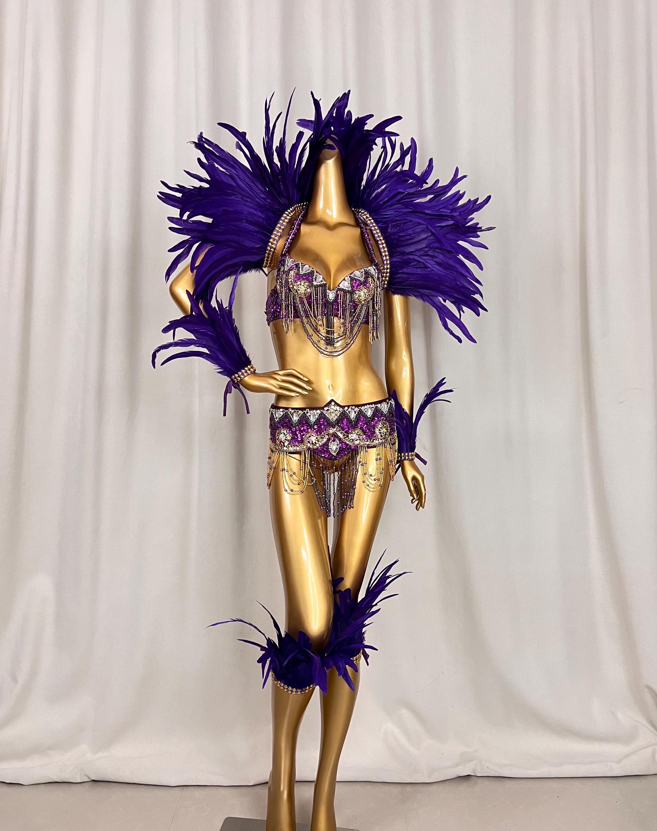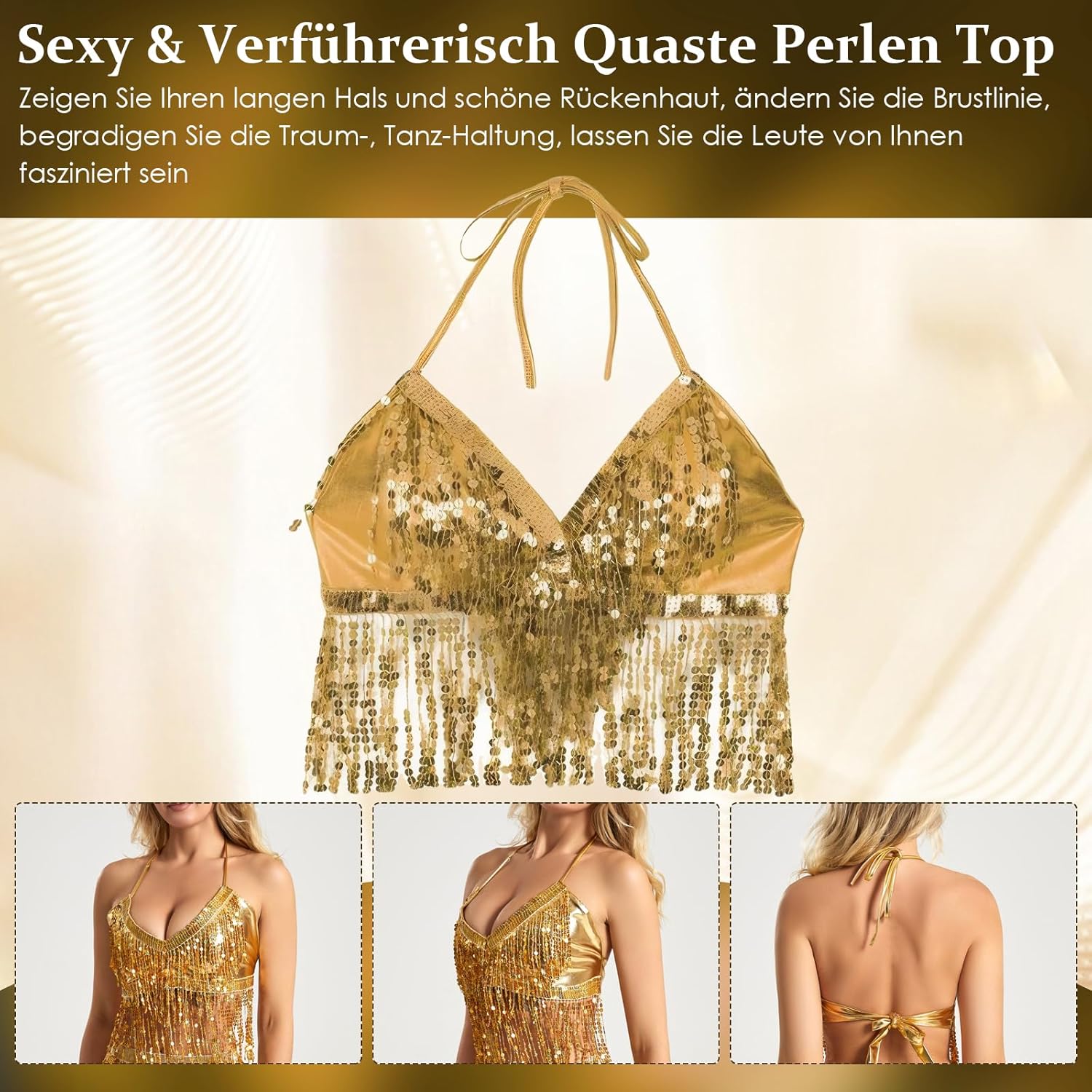 Rrongwn Top Da Donna In Argento Con Paillette, Nappa Con Perle, Reggiseno Con Brillantini, Per La Danza Del Ventre, Per La Schiena Scoperta, Con Paillettes, Lilla, Taglia Unica