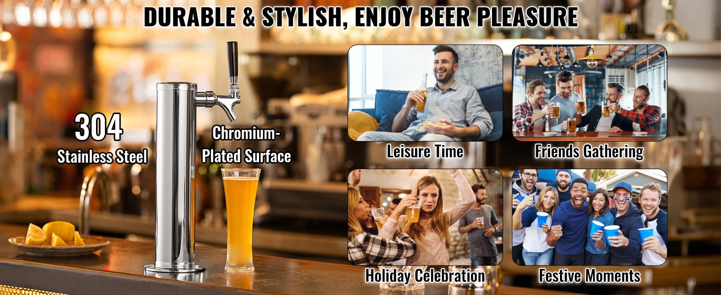 Torre per birra a rubinetto singolo : realizzata in acciaio inossidabile 304 di prima qualità, la torre per birra a rubinetto singolo offre eccezionale durata e affidabilità, ideale sia per i kegerator commerciali che domestici Mantienilo fresco, assapora ogni sapore: con schiuma isolante spessa 8 mm, questo dispenser per torre di birra kegerator a rubinetto singolo mantiene un isolamento termico ottimale, mantenendo ogni bevanda versata fresca e fresca. Regolatore a doppio manometro e accoppiatore per fusti di sistema: il nostro regolatore W21.8 aggiornato è dotato di doppi manometri: il manometro superiore indica accuratamente la pressione di uscita, mentre il manometro laterale mostra il gas rimanente nel serbatoio. Torre per birra a rubinetto singolo: realizzata in acciaio inossidabile 304 di prima qualità, la torre per birra a rubinetto singolo VEVOR offre eccezionale durata e affidabilità, ideale sia per i kegerator commerciali che domestici. Rubinetto a molla con chiusura automatica: dì addio a fuoriuscite e sprechi! Perfect Draft VEVOR Kit Spillatore Birra A Doppio Rubinetto, Dispenser Torre Birra Per Fusti In Acciaio Inossidabile Con Regolatore W218 Doppio Manometro E Accoppiatore Fusti S System 84172117 Dispenser Bevande Vassoio raccogligocce per birra solido: nessuna fuoriuscita, nessun problema: il kit torre kegerator VEVOR è inoltre dotato di un vassoio raccogligocce per birra, che cattura efficacemente le gocce del rubinetto e il liquido in eccesso per un piano di lavoro pulito.
