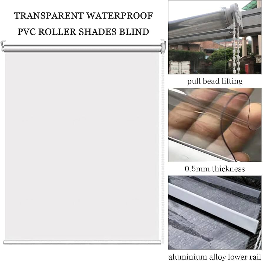 Tende A Rullo Per Esterni Tenda A Rullo Impermeabile Trasparente, Tenda Avvolgibile Tenda Pvc Trasparente Tende avvolgibile impermeabili in PVC trasparente esterni, spessore 0,5mm, non teme tutti i tipi di ambiente, resistente allo strappo, nessuna deformazione, nessuna crepa, può fornire protezione per i vostri oggetti all'aperto; con elevata trasparenza, non blocca la linea di vista, non ostacola la comunicazione; tirare le perline per sollevare, può essere regolato in qualsiasi posizione; con accessori, facile da installare. Materiale resistente: La tenda Avvolgibile trasparente impermeabile è realizzata in tessuto vinilico PVC da 0,5 mm e guide superiori e inferiori in lega di alluminio di alta qualità, materiale sicuro ed ecologico, consistenza morbida, pieghevole, resisten ◆Parametri del prodotto:Nome: tenda a rullo trasparente impermeabileMateriale: PVC Spessore: 0,5 mmDimensione: larghezza x altezza, personalizzabilePrincipio di funzionamento: perline di trazioneCaratteristiche: antivento, antipioggia, impermeabile, antiolio, antipolvere, antiumidità, resistente alle intemperie, isolamento termicoScene applicabili: ufficio, cucina, camera da letto, balcone, pergola esterna, gazebo, negozio di frutta, banco cassa, ristorante, hotelIl pacchetto include: 1 x tenda chiare + set completo di accessori di installazione◆Misure:Installazione interna: larghezza della tenda = larghezza della finestra - 1cm/0,39in, altezza della tenda = altezza della finestra. ◆Alta trasparenza: Le tende a rullo impermeabili per esterni sono realizzate in materiale di vetro morbido in PVC, con la stessa trasparenza del vetro, non bloccano la luce e la vista, possono mantenere il vostro interno luminoso e naturale, fornire una visione chiara ad alta definizione, in modo da poter osservare la situazione interna ed esterna in qualsiasi momento, in modo che tutto possa essere visto. ◆Molteplici applicazioni: Le tende trasparenti per finestre mantengono la stanza fresca in estate e calda in inverno, hanno anche un divisorio, che può fornire una barriera sanitaria separata e chiara, adatta per pergola esterna, gazebo, terrazza, balcone, giardino, finestra, porta, portico, può anche essere utilizzata per interni, camera da letto, bagno, ufficio, cucina, soggiorno e così via. ◆Materiale resistente: La tenda Avvolgibile trasparente impermeabile è realizzata in tessuto vinilico PVC da 0,5 mm e guide superiori e inferiori in lega di alluminio di alta qualità, materiale sicuro ed ecologico, consistenza morbida, pieghevole, resistente agli strappi, anti-invecchiamento, lega di alluminio, leggera, resistente all'ossidazione, ad alta resistenza, non facile da deformare, robusta e durevole. ◆Protezione perfetta: La tenda a rullo in PVC chiare è antivento, antipioggia, impermeabile, antipolvere, antiumidità, termoisolante, resistente alle alte e basse temperature, può resistere alla luce forte, prevenire gli spruzzi di pioggia, bloccare l'ingresso di polvere o insetti, mantenere l'interno asciutto e ordinato, può affrontare perfettamente tutti i tipi di maltempo e fornire una protezione a tutto tondo per voi.