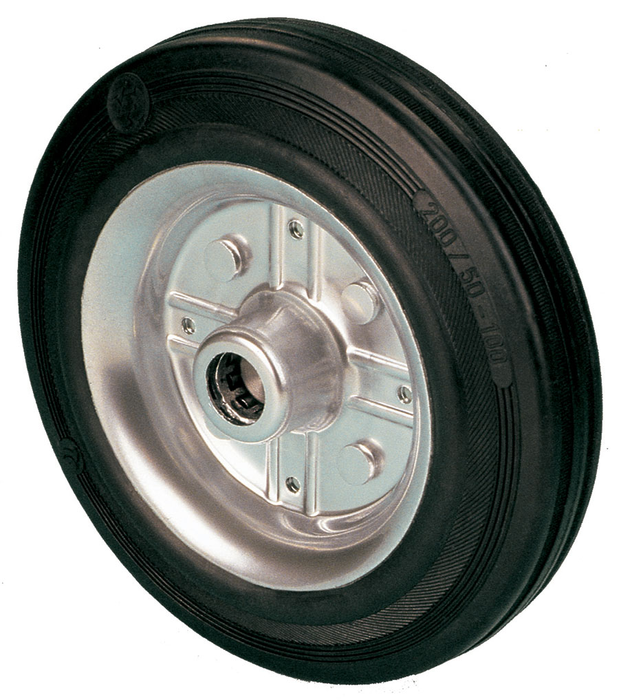 Ruote In Gomma Ruote Con Anello In Gomma Piena - Monari Ruote Srl - Piena Con Mozzo Su Ruote Per Carrelli Ruota in gomma nera piena Disco in Ferro Ruota per carrelli a traslazione manuale per carichi medi. RUOTA CON ANELLO IN GOMMA PIENA NERA CON DISCO IN PLASTICA MOZZO CON FORO PASSANTE RUOTE PER CARRELLI A TRASLAZIONE MANUALE PER CARICHI LEGGERI. SETTORE INDUSTRIALE. CARATTERISTICHE TECNICHE - Temperatura di utilizzo da -10°C a +50°C. - Durezza anello 85 Mozzo con cuscinetto a rullini