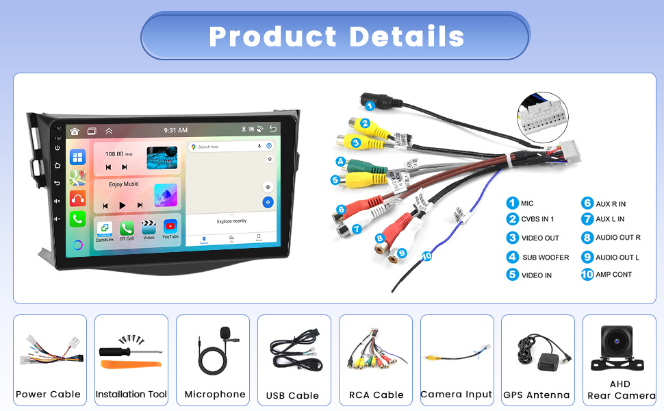 Con 2G-RAM + 32G-ROM) per una risposta più rapida, prestazioni più stabili e funzioni più potenti. ② REGALO: fotocamera posteriore 【CARATTERISTICHE PRINCIPALI】 Kit vivavoce per auto Bluetooth5.0 / streaming multimediale - Ricezione radio AM / FM / RDS - Memoria USB / MicroSD (max 256 GB) - Sistema di navigazione GPS online e offline - Riproduzione video Full HD 1080P - Funzione di uscita AV - Regolazione EQ - Controllo al volante - Mirrorlink - 4G/WIFI. Radio Toyota Rav 4 SXAUTO Android 14 IPS Autoradio Per Toyota Rush/Daihatsu/Terios (2006-2016) - 2G+32G - Senza Fili Carplay & Android Auto - GRATUITI Telecamera - DAB Fast-boot Volante Split-Screen - 2 Din 9 Pollici Rav 4 Amazon Le migliori offerte per 32GB GPS Autoradio Per Toyota RAV4 2006-2012 Android 14 Car Play Navigation WIFI sono su Confronta prezzi e caratteristiche di prodotti nuovi e usati Molti articoli con consegna gratis DAB + radio digitale (supportata, DAB + box richiesta, Asin:B092D31BVX) Supporta il modulo DAB+ completamente funzionale per la ricezione radio digitale: basta collegare l'antenna DAB+ e il DAB e il gioco è fatto! 【APPLICABILI MODELLI & ANNI】Misura perfetta per la tua Toyota RAV4 (2007-2012). ②Puoi eseguire due app tramite la modalità schermo diviso. Torque, disponibile nel Play Store) e un modulo Bluetooth OBD2, puoi recuperare la memoria errori dal veicolo e avere informazioni aggiuntive e valori importanti visualizzati in tempo reale sullo schermo come una dashboard. Se non sei sicuro che sia adatto o meno, contattaci per assistenza con le immagini del dashboard: SXAUTO_TECHSUPPORT@163.com Puoi connetterti tramite WiFi (BT) o Wired (USB) per effettuare chiamate, inviare messaggi di testo, riprodurre musica e navigare senza sforzo. Informazioni di sistema Sistema operativo Android 14 CPU SUPERIORE: CPU T3 Quad Core Cortex-A7 1,8 GHz RAM: DDR3 2GB ROM: 32 GB Dimmer integrato Uscita audio: 4*50 W max Funzione mirror-link Supporta il telefono Android e il mirroring di Iphone Con Mirrorlink, i tuoi telefoni Apple e Android sono supportati in modo ottimale con musica, video e streaming dello schermo, sincronizzazione della rubrica, Bluetooth, controllo dello schermo (Android) e chiamate. Compatibile: la maggior parte degli scanner OBD2 e OBD2 wifi Radio: Radio di marca: sintonizzatore AM/FM integrato (in tutto il mondo), radio RDS Sintonizzatore AM / FM - Gamma di frequenza: 522 - 1620 KHz, 87,5-108 MHz Comando al volante: Collega semplicemente il telecomando al volante del tuo veicolo al sistema SXAUTO. OBD2 (supportato), Con un'apposita app (es. Ingresso telecamera (telecamera posteriore a LED GRATUITA) Supporta la telecamera per la retromarcia Passerà automaticamente alla telecamera di retromarcia quando viene inserita la retromarcia.