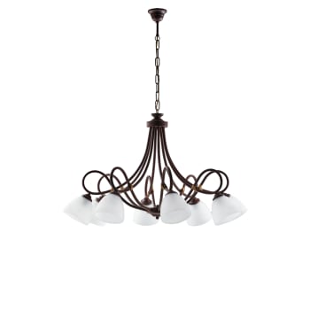 Collezione Alice LA DELICATEZZA DELL'ARTE POVERA Lumetto 1 luce in ferro battuto laccato con pittura termoindurente color marrone wengè con decorazione oro . . Diffusore in vetro centrifugato alabastro bianco a forma di fiore con 5 punte. Design semplice Dimensioni: Altezza Corpo=31 Cm Diametro=25 Cm Per gli amanti del genere classico, che non passa mai di moda. Design semplice ma curato, lavorato con maestria da mastri artigiani italiani con materiali made in Italy. Finitura: Marrone e Oro Lampadario Vetro Ferro Lumetto Classico Rustico Botte 1 Luce In Ferro Marrone Oro E Paralume Avorio 85263509 Lampadario In Ferro Battuto Disponibile anche nella versione avorio e oro.