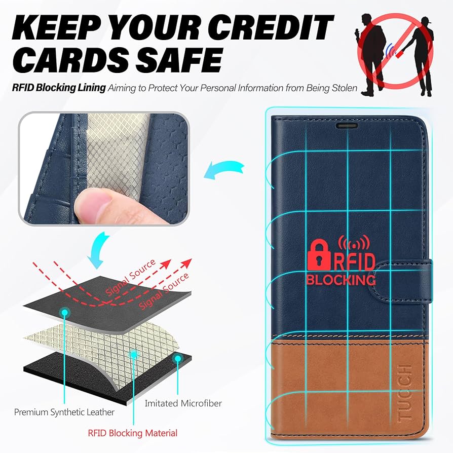 TUCCH Case Wallet For Galaxy S24 6.2 5G, Kickstand [RFID Blocking] Card Holder, Folio Magnetic PU Leather [TPU Shockproof Interior Case] Protective