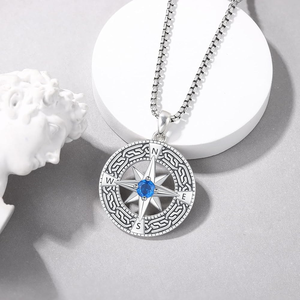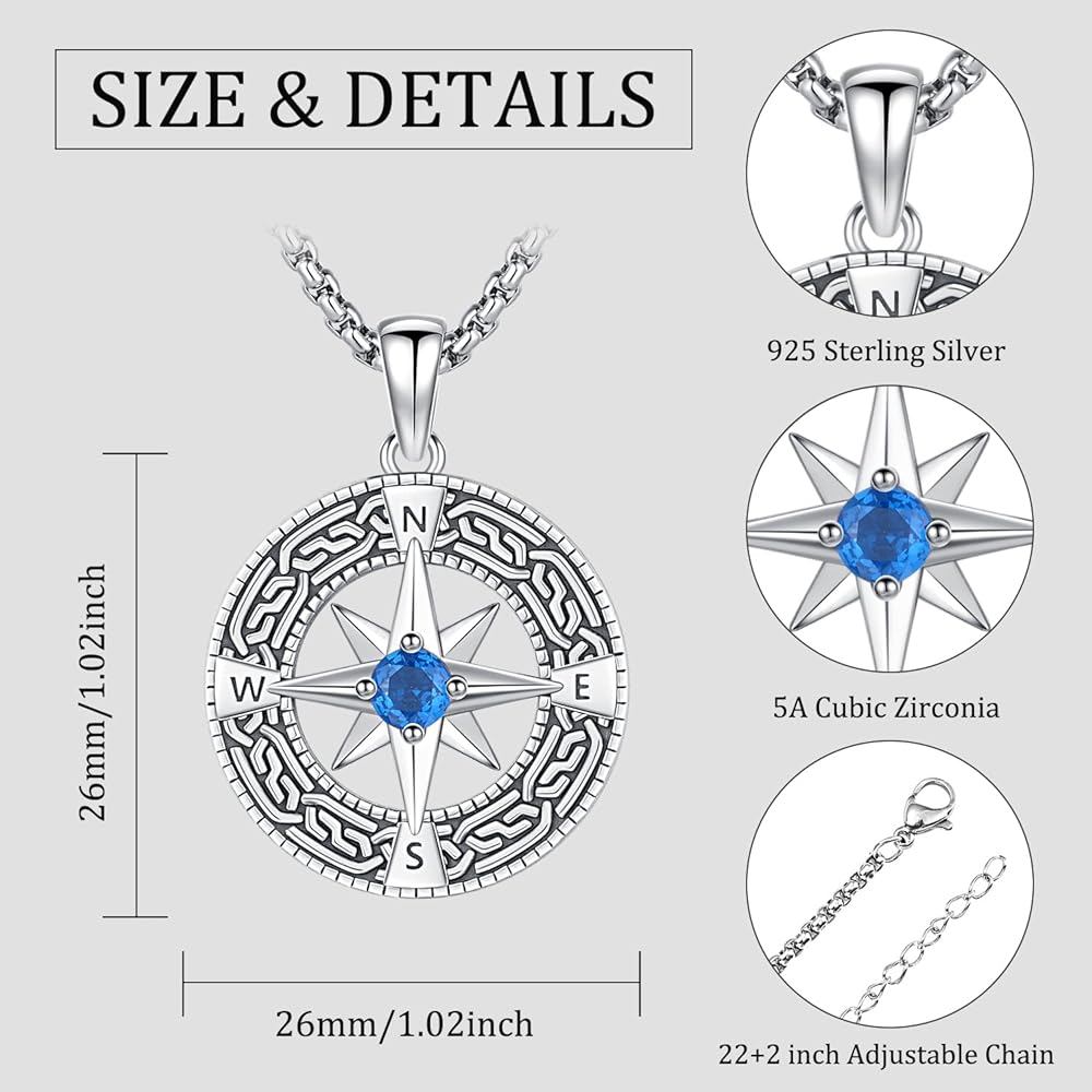 KINGWHYTE Collana Da Uomo Con Bussola In Argento Sterling S925, Ciondolo A Bussola Per Compleanno, Regalo Di Laurea, Gioielli Per Uomini E Donne, Argento Sterling, Zirconia Cubica