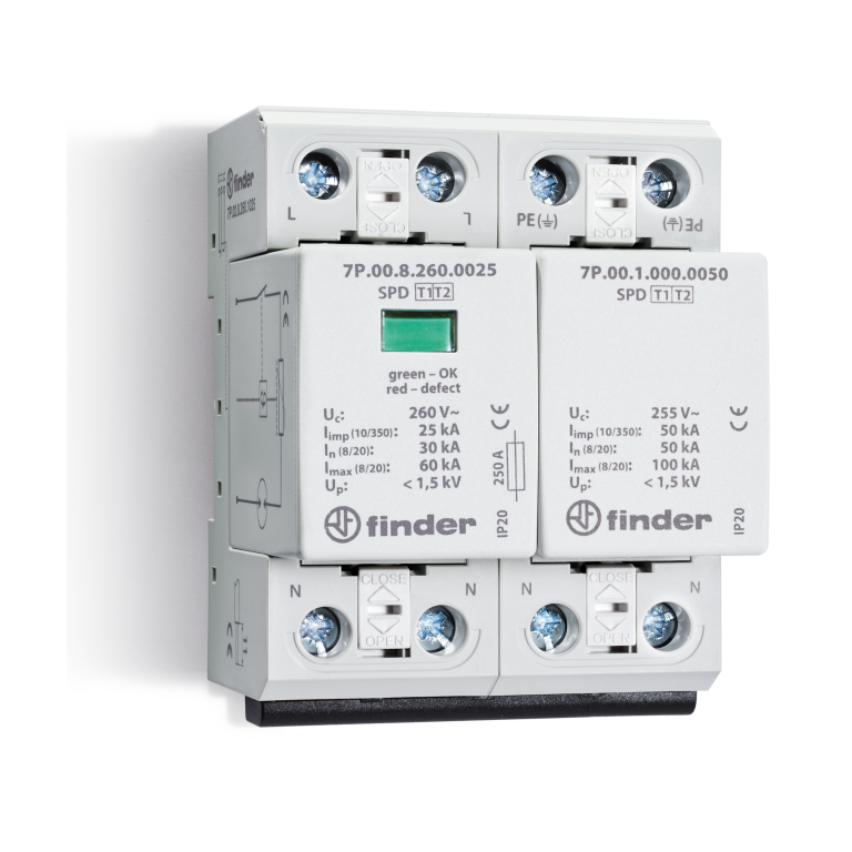 Scaricatori Di Sovratensioni 220v FINDER FINDER SCARICATORE DI SOVRATENSIONE TIPO 3 16A 2>5MT 7P3782751003 Scaricatore Di Sovratensione Tipo 1 Da installare al confine fra le zone LPZ 0 e LPZ 1 SPD adatti per sistemi 230/400 V AC per la protezione da sovratensioni causate da scariche dirette o indirette spd sovratensione scaricatore 7p surge finder incasso installazione serie scaricatori findernet Moduli varistore e spinterometro sostituibili