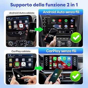 Buy Carlinkit 5.0 SE Pro Wireless Android Auto & CarPlay Adapter,Convert Wired to Wireless for OEM Vehicles (Model Year: 2015 to 2025) Compatible with Wired CarPlay & Android Auto Cars In caso di problemi, il team di assistenza fornisce soluzioni personalizzate per garantire un'esperienza senza problemi. Design compatto e facile da usare: Progettato per essere elegante e portatile, CarlinKit 5.0 SE PRO è facile da installare e si adatta perfettamente alla vostra auto. Doppio sistema wireless in un unico dispositivo: CarlinKit 5.0 SE PRO è un rivoluzionario adattatore wireless 2 in 1 che converte senza problemi CarPlay cablato in CarPlay wireless e Android Auto cablato in Android Auto wireless, offrendo una doppia esperienza intelligente per gli utenti iOS e Android. Assistenza post-vendita affidabile: Sostenuto da una garanzia di 1 anno, CarlinKit 5.0 SE PRO offre un servizio post-vendita di prim'ordine. Carlinkit 5.0 Driver Carlinkit 5.0 SE Pro Adattatore Android Auto E CarPlay Senza Android Auto Wireless Si noti che non può convertire Android Auto in CarPlay o viceversa e che i telefoni Huawei potrebbero avere problemi di compatibilità.