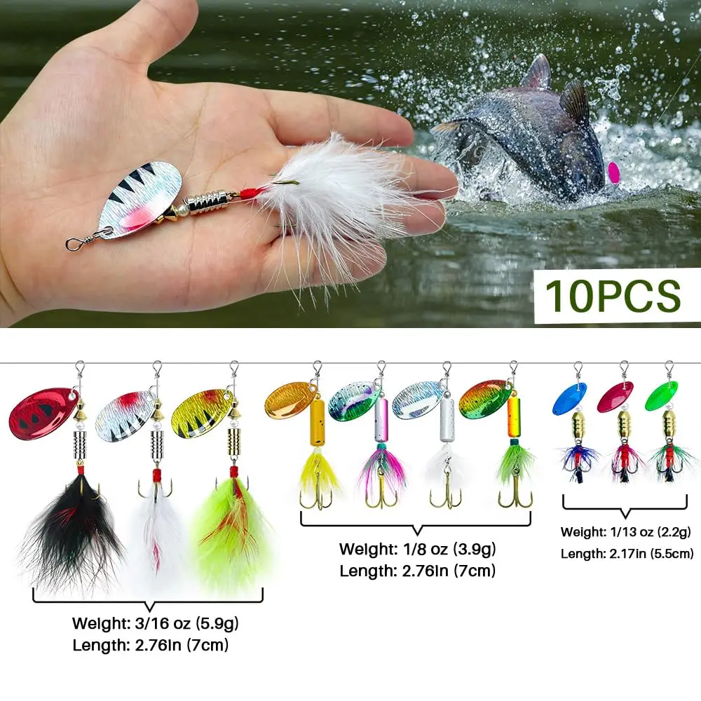 SET 10 PEZZI ESCHE ARTIFICIALI SPINNER PESCA A SPINNING AMO