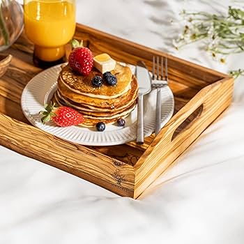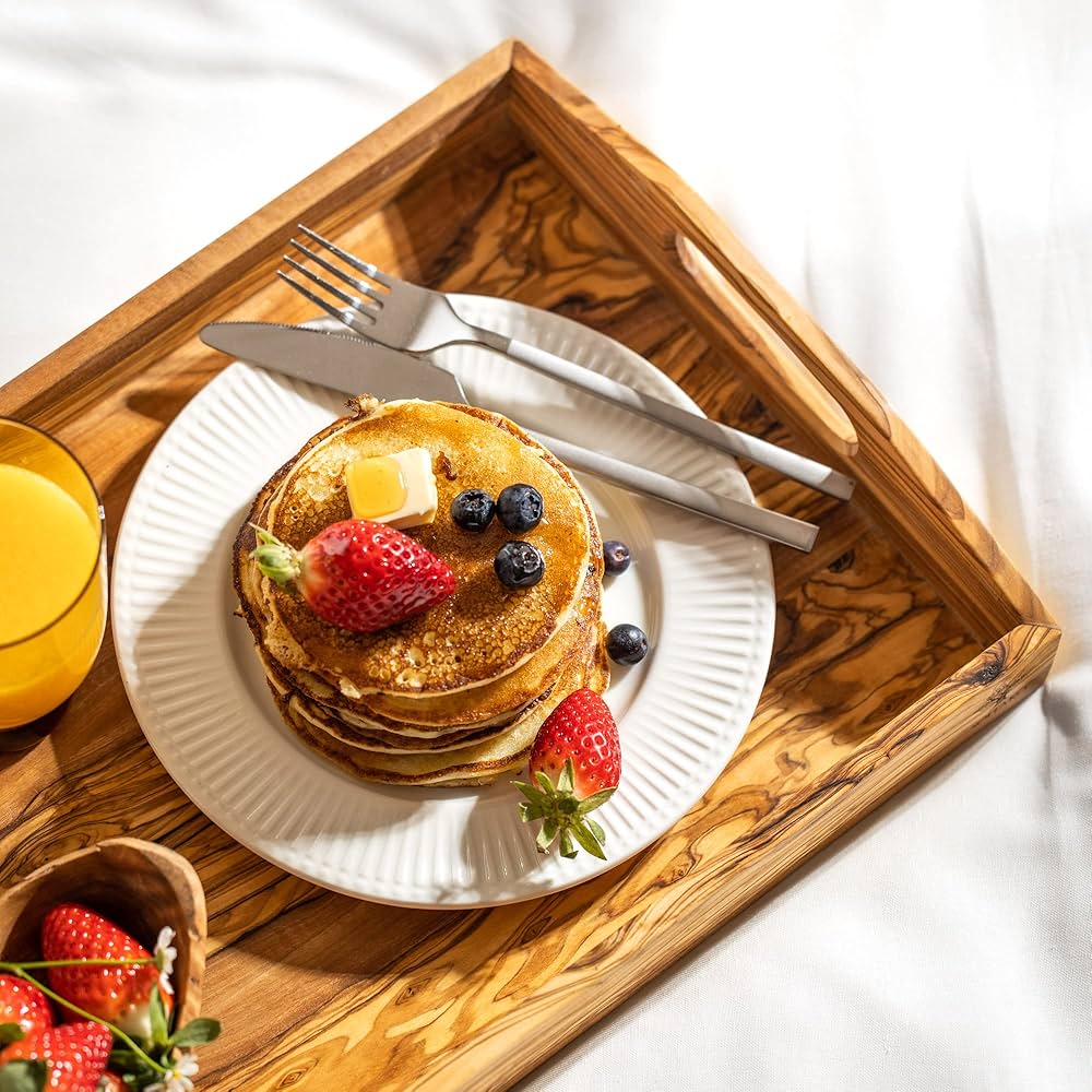 SOLTAKO Vassoio Da Portata Con Manici In Esclusivo Legno D'ulivo, Vassoio In Legno, Vassoio Da Cucina, Vassoio Da Portata Per Colazione, Tè, Tavolino Da Caffè, Decorazione Da Cucina, Letto 32 X 2