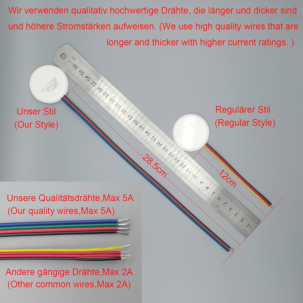 L'interruttore dimmer a LED tensione costante di ingresso: 3,3 – 24 V DC, 12 V max corrente è 5 A. con il suo adesivo autoadesivo senza la necessità di fori. Dimmer LED compatibile con diverse luci a LED con tensione costante, ad esempio B. Spessore massimo 3 cm, il diverso spessore è sensibile, più sottile è meglio, si prega di non chiudere in prossimità di materiali metallici per evitare interferenze. Interruttore touch nascosto, principalmente per il controllo di luci a LED, lampade da tavolo, adatto per armadi, guardaroba, scrivanie, librerie, vetrine, specchi cosmetici, refrigeratori per vino, roulotte, ecc. Precauzioni per l'uso: ● Cablaggio: cavo rosso: Vin+,Nero Cavo: Vin-; Blu Cavo: vout+,Verde Cavo: vout-. ● Questo dimmer touch deve essere alimentato con una tensione continua costante. Funzione di memoria: quando si accende la luce, la luminosità della luce è la stessa dell'ultima volta automaticamente. Il segnale induttivo può penetrare in legno, pietra, vetro, plastica, ecc. ● Se si riceve un dimmer touch che non funziona correttamente, si prega di contattarci immediatamente e vi offriremo una soluzione. (se non funziona correttamente dopo l'accensione, si prega di ricollegarlo in questo ordine) ● Non posizionare il dimmer vicino a dispositivi metallici, in quanto ciò potrebbe causare interferenze che impediscono il corretto funzionamento. (Se il dispositivo è alimentato da AC 230 V, si prega di visitare ASIN: B0D2HTDW14) DC 3,7 – 24 V, 3 A, Interruttore Touch Per Barra Luminosa A LED Smart Home, Penetra In Legno, Pietra, Vetro, Ecc., Senza Fori Necessari (bianco Interruttore Controllo intelligente della voce: luce a breve tocco, luce corta spenta, lunga durata del tocco dimmerabile. Barra Led 12v STBTECH Interruttore Touch LED Da 12 V, Nascosto, DC 3,7 - IT Interruttore Smart (resettato automaticamente dopo un'interruzione di corrente). Installazione semplice: staccare l'adesivo biadesivo che accompagna il dimmer touch per fissare l'interruttore sul retro della piastra, quindi utilizzare le due clip di cablaggio che configuriamo per effettuare il collegamento alla lampada e la tensione in pochi secondi e senza saldatura. Si tratta di un interruttore dimmer installato a scomparsa con controllo touch che può essere facilmente attaccato ad armadi, guardaroba, scrivanie, piani di lavoro, ecc.