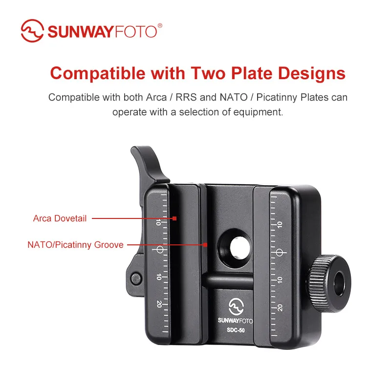 SUNWAYFOTO DDC-26LT QR-Plate+Morsetto Combo Compatibile con Arca/RRS QR Plate (26mm) Vite-manopola Morsetto Materiale Alluminio Swiss SUNWAYFOTO DDC-26 SCREW-KNOB CLAMP 26MM Lever Clamp I prodotti internazionali hanno termini diversi, sono venduti dall'estero e possono differire dai prodotti locali, compresi il formato, le indicazioni e la lingua del prodotto, dell'etichettatura o delle istruzioni.