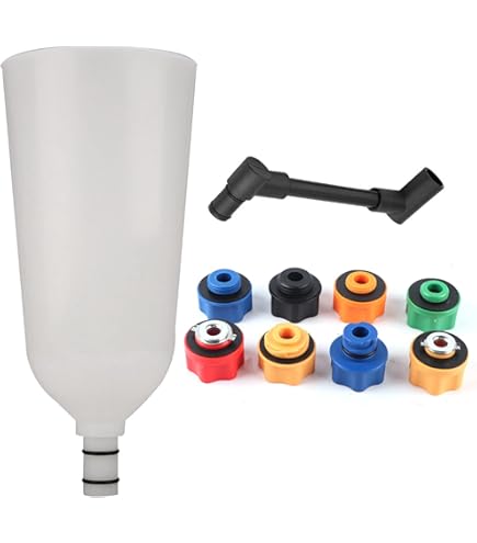 Kit Di Imbuto Per Il Refrigerante Senza Perdite, 15 Pezzi, Kit Di Sfiato Per Il Radiatore , Imbuto Per Riempire Bottiglie, Adattabile A Qualsiasi Veicolo al prezzo più basso a . Spedizione gratuita su tutti gli ordini L'imbuto senza fuoriuscite è perfetto per il lavaggio del motore, il kit di tester di pressione del liquido di raffreddamento, anche il lavaggio del radiatore; funziona per veicoli americani e di altri veicoli. La lunga asta di estensione è specifica per aree difficili da raggiungere, potrebbe essere utilizzata a qualsiasi angolazione. Questo imbuto del refrigerante ha uno speciale interruttore rotativo, diverso da altri, che ci aiuta a controllare efficacemente l'arresto del trabocco o delle bolle. Il kit per imbuto multiuso contiene 5 adattatori, 4 tappi di riempimento, due gomiti a 45°, due estensori da 5 pollici e uno spesso imbuto antigelo trasparente. SWANLAKE - Kit Per Imbuto Refrigerante Antifuoriuscita, Per Radiatore A Il design di rinforzo del filo assicura che il liquido non fuoriesca in qualsiasi situazione.