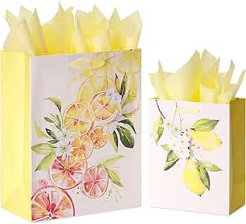 Questo set include un sacchetto regalo grande e uno medio con quattro fogli di carta velina color oro metallizzato. Papyrus Offre articoli di cancelleria, biglietti di auguri, confezioni regalo, sacchetti regalo e prodotti divertenti per le occasioni quotidiane e tutte le festività natalizie, il tutto con design unici e decorazioni di qualità! La grande borsa presenta una torta di compleanno ad acquerello, sormontata da candele, e seduta carina su un delicato supporto per torta dorato. Papyrus Sacchetti regalo di compleanno con carta velina, agrumi (2 sacchetti, 8 fogli I sacchetti regalo Papyrus con carta velina creeranno sicuramente presentazioni spettacolari per i tuoi regali! Aggiungi un po 'di stile a qualsiasi serata di compleanno e regala un regalo avvolto in sacchetti regalo Papyrus con carta velina. Sacchetti Carta Compleanno Sacchetti Regalo Con - Foto Stock: Foto, Immagini Carta Velina Questo set di sacchetti regalo in edizione limitata è perfetto per molti regali difficili da avvolgere per compleanni o qualsiasi occasione regalo Il sacchetto regalo medio misura 17,8 cm. x 10 cm. x 23 cm. Aggiungi ancora più eleganza alla tua presentazione con la carta velina dorata metallizzata inclusa, che puoi sfumare o piegare per il tocco finale perfetto. Ogni foglio di carta velina misura 50,8 cm. x 66 cm. Grande sacchetto regalo misura 25,7 cm. x 14,6 cm. x 33 cm.