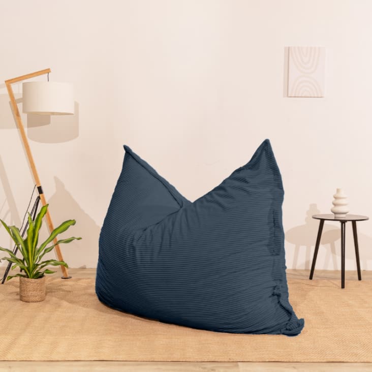 Bananair - Pouf Poltrona Sacco In Velluto A Coste Larghe - Imbottitura In Schiuma, Morbido E Confortevole - Fodera Lavabile - Pratico E Facile Da Trasportare (80x70 Cm, Blu Scuro