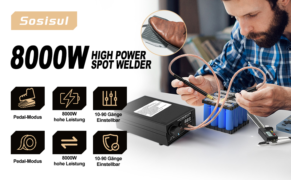 Può essere utilizzato per la saldatura a punti di batterie, hardware e componenti elettronici. È ideale per la produzione di pacchetti di batterie e tecnologia. Il mini saldatore a punti con design di regolazione della potenza in uscita a 9 livelli, è possibile regolare la potenza di uscita da 0 a 800 A ruotando la manopola, maggiore è il valore, maggiore è la potenza. Acquista Saldatrice a punti da 8000 W , saldatrice a punti a batteria da 0,1-0,3 mm, funzionamento a pedale regolabile a 10-90 marce, per spina USA fai-da-te. Uno dei tanti articoli disponibili nel nostro Accessori per saldatura dipartimento qui presso Fr Basta premere il nastro in nichel con due perni di saldatura e passare l'interruttore a pedale. Saldatrice a punti da 8000 W per batterie: la saldatrice a punti aggiornata con doppia uscita a impulsi, modalità di saldatura a pedale, che può saldare facilmente fogli di nichel da 0,1 a 0,3 mm di spessore, è possibile terminare i lavori di saldatura in modo semplice ed efficiente, il punto di saldatura è bello ed elegante. Saldatrice Portatile Puntatrice Saldatrice A Punti Awhz H1 4.2V Per 18650 Batterie Piastre In Nichel Nastro A Strisce Saldatore A Punti Fai Da Te Punti Di Saldatura Saldatore Saldatore A Batteria Ed è anche adatto per la saldatura di 0,1-0,3mm lamiera di acciaio nichelato e 0,1mm puro foglio di nichel veloce. Ideale per saldatura di precisione. La saldatrice a punti fai da te è un interruttore a pedale, la saldatura a punti è più casual. Il prodotto deve essere completamente caricato prima del primo utilizzo, si prega di caricare quando la tensione sullo schermo scende sotto i 7,3 V. Display LCD: il livello di tensione della batteria è il fattore chiave che influenza l'effetto di saldatura a punti.