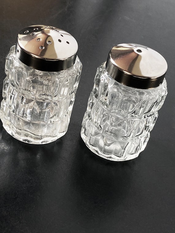 Saliera E Pepiera In Vetro E Metallo, Set Da 2, Colore: Bianco