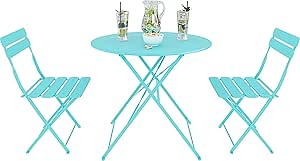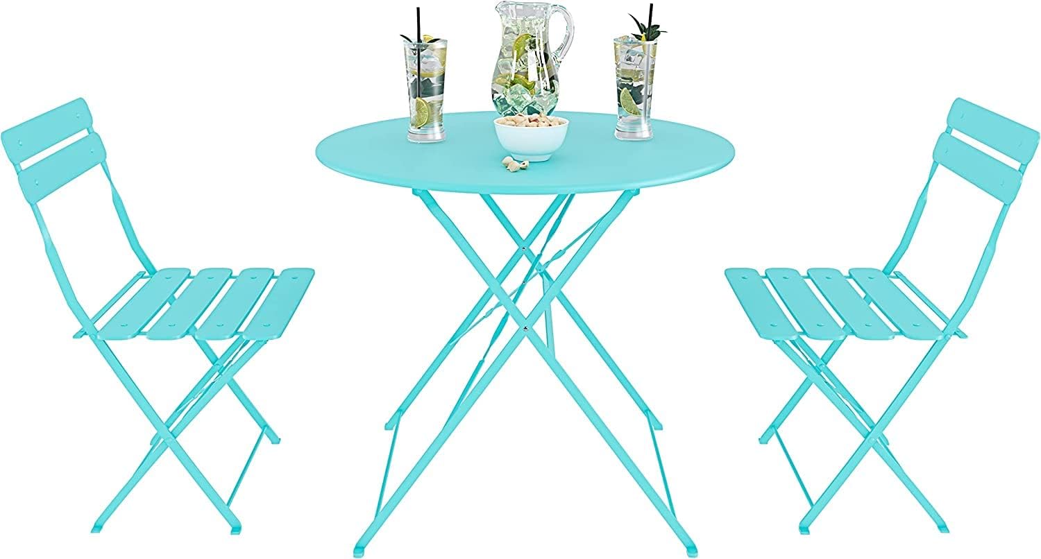 Set Bistrot 2 Sedie Con Tavolino Pieghevole Salvaspazio Salottino Salotto In Acciaio Per Patio Giardino Balcone Veranda Esterno Piscina Terrazzo Arredo Design Retro Industrial (Azzurro