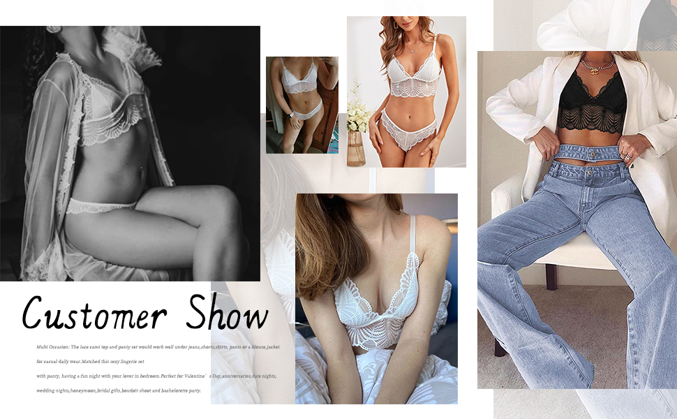Mostra la curva della vita più affascinante ed elegante delle donne, e il singolo strato di tessuto di pizzo intorno alla vita lo rende leggermente sexy, rendendo le donne che indossano questa biancheria intima una bomba sexy. Il materiale è comodo, traspirante e morbido e il pizzo è perfetto per essere indossato a contatto con la pelle e valorizzare le tue curve. Babydoll Donna Satohom Set Lingerie Donna Sexy Confortevole Reggiseno Perizoma Donna Pizzo 【Taglia】S-XXXL. Set di lingerie sexy da donna realizzato in spandex. La nostra lingerie sexy da donna è la scelta perfetta per tutte le donne adulte che desiderano vivere momenti sexy e seducenti. Reggiseno sexy LINGERLOVE Set Lingerie Donna Babydoll Donna Sexy Confortevole Reggiseno Pizzo Babydoll Aperto con Reggiseno e Perizoma per La Notte di Nozze Vacanze in Luna di Miele Viaggio per 21,52 NOTA: questo reggiseno intero è disponibile in una taglia leggermente più piccola. Se non vuoi che sia troppo stretto, scegli una taglia più grande. 【Miglior regalo】 Lo splendido design in pizzo trasparente mostra la vera bellezza, rendendoti più misterioso per il tuo amante.