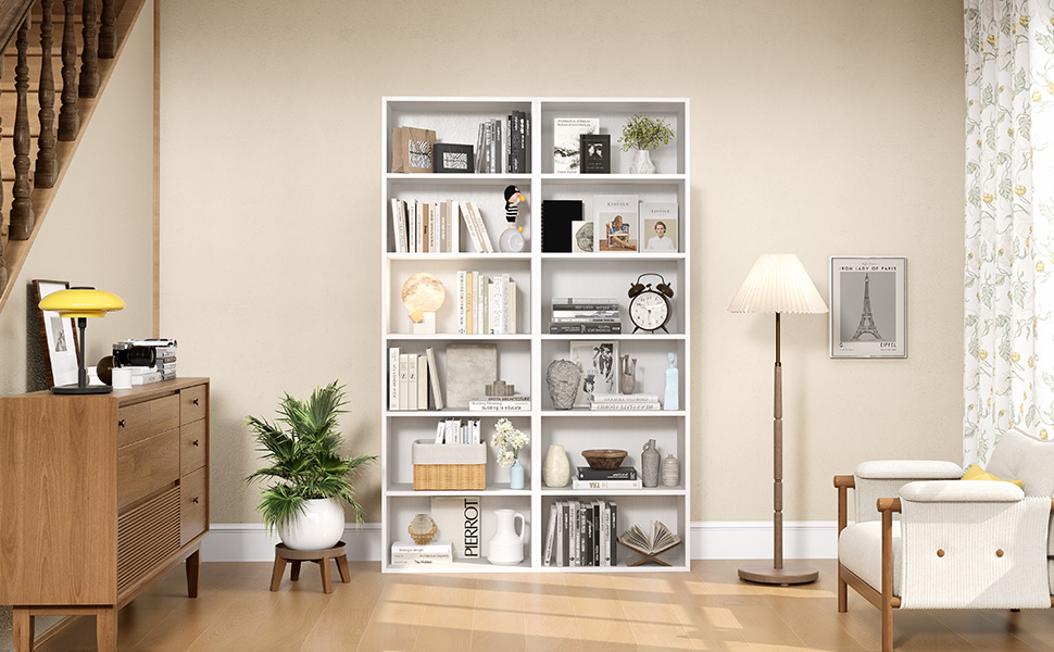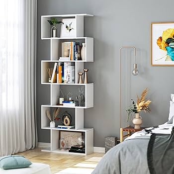 Oneinmil Libreria,Libreria Scaffale A 6 Ripiani,Scaffale Moderna In Legno,Divisorio Per Stanza,Organizzatore Autoportante A Cubi,per Soggiorno,Studio Ufficio,Camera Da Letto,23.5 X 30 X 181 Cm,Bianca