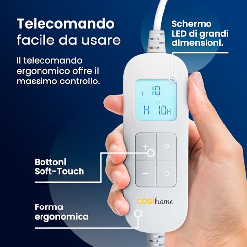 Il pratico telecomando cablato rende l'uso della coperta termica matrimoniale semplice e comodo. Durante i freddi mesi invernali, lo scaldaletto matrimoniale ti offre calore e comfort. Inoltre, grazie all'interruttore rimovibile, la coperta è lavabile in lavatrice, facilitando la manutenzione. 【Materiale a Risparmio Energetico】: Questa scaldaletto matrimoniale ha una potenza di 2×50W e il suo materiale non tessuto altamente traspirante consente di avere un consumo di meno di 1 kWh ogni notte, garantendo un sonno caldo e accogliente per tutto l'inverno. Se il prodotto presenta problemi di funzionamento entro 30 giorni dall'acquisto, offriremo un servizio di sostituzione gratuito. Scopri il tuo indispensabile per il calore in questo inverno! Goditi il calore, vivi il comfort il plaid elettrico doppio in tessuto non tessuto, realizzato in materiale di alta qualità, traspirante e morbido, si adatta alla pelle, offrendo a te e al tuo partner una coccola di calore, rendendo ogni notte fredda accogliente come una primavera! 160×140 cm, plaid elettrico doppio a tre impostazioni + funzione anticalcare + timer. Facile da smontare e lavare, per mantenere sempre la massima igiene. Calore protetto, sicurezza ed efficienza Con tre livelli di temperatura (30-40-50℃) e due controller indipendenti, lo scaldaletto matrimoniale consente di regolare il calore in due aree separatamente. Il prodotto è stato sottoposto a rigorosi controlli di qualità per assicurare elevati standard di sicurezza. Questo articolo: LEEVOT Scaldaletto Matrimoniale 160 x 140 cm, 3 Temperature Regolabili Coperta Elettrica, Antimite, Lavabile, Spegnimento Automatico, 2 Controller, Timer Programmabile 39,99€ 39 , 99 € (0,02 €/unità Tre modelli di plaid elettrico.Aggiornamenti in corso... 150×80 cm, plaid elettrico singolo a due impostazioni. Scaldasonno Imetec Scaldaletto Matrimoniale Spegnimento Automatico Scaldasonno Imetec Matrimoniale Basta accendere la nostra coperta termica 15 minuti primauti di andare a dormire, e vi godrete un letto caldo e accogliente nelle fredde notti invernali, rendendola perfetta per l'uso in inverno. 【Assistenza Post-Vendita Senza Preoccupazioni】: Abbiamo un negozio fisico a Venezia, Italia, per garantire un acquisto senza preoccupazioni. LEEVOT scaldaletto matrimoniale Riscalda ogni tua notte con lo scaldaletto matrimoniale!