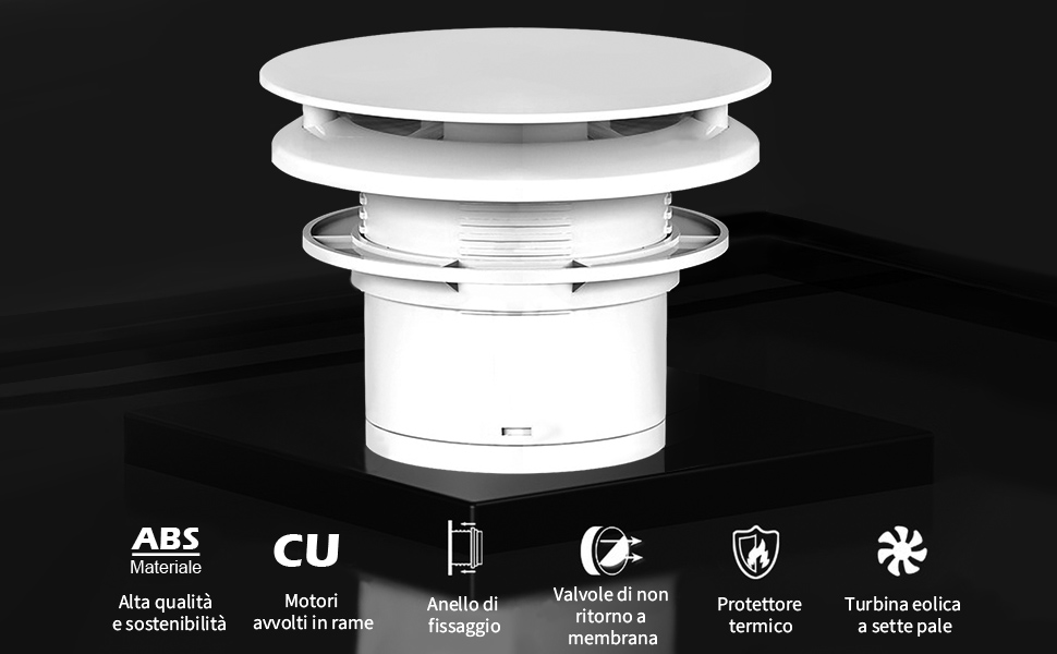 Descrizione prodotto Ventilatore di scarico HUGOOME per godere di una vita sana Diametro di connessione 100mm Progettato per un funzionamento continuo senza manutenzione, alloggiamento e ventilatore in plastica ABS di alta qualità (resistente ai raggi UV), design ottimizzato per un'alta efficienza e una lunga durata, motore elettrico affidabile e a risparmio energetico. 【Risparmio energetico e durata】Questo ventilatore adotta materiale ABS ecologico, leggero e non facilmente deformabile, eccellente resistenza al calore e durata. Protezione IPX4 - contro i getti d'acqua Per evitare che l'aria esterna e gli insetti entrino nella stanza. Il nostro ventilatore da bagno 09X è ideale per il montaggio a parete e a soffitto. L'efficienza del consumo di energia è di soli 12 watt, che può risparmiare energia. Facile montaggio della vite dell'aria, specialmente per la pulizia regolare del ventilatore. Può essere acceso/spento con un interruttore 【Ampiamente usato】 Ampia gamma di applicazioni, adatto per cucina, bagno, camera da letto, soggiorno e ventilazione dell'ufficio. La struttura è protetta contro la caduta dell'elica del ventilatore. Alte prestazioni]95 m³/h di flusso d'aria elevato, rumore inferiore a 35 dB, protezione IPX4.Inoltre è stato progettato con un lembo posteriore che permette di aprire e chiudere automaticamente con il ventilatore.Per evitare che l'aria esterna e gli inse 【Facile da installare】 Stile rimovibile e installazione semplice Adatto per l'installazione a parete e a soffitto. Velocità del motore: 2300RPM Filtri Carbone Attivo Ventilatore Di Scarico Motore 145W Estrattore D'Aria Condotto Ventilatore Da Tavolo Motore molto silenzioso e facile montaggio del ventilatore senza smontaggio. 【Design di precisione】 Il design della copertura rotonda della griglia del ventilatore di scarico permette al ventilatore di soffiare l'aria in modo uniforme nella casa e di scaricare l'aria viziata in tutte le direzioni per mantenere l'aria interna fresca. Puoi installare questo aspirapolvere a parete dove hai bisogno di usare questo aspirapolvere secondo le tue reali esigenze per fornirti la convenienza nell'uso Tre modi di installare