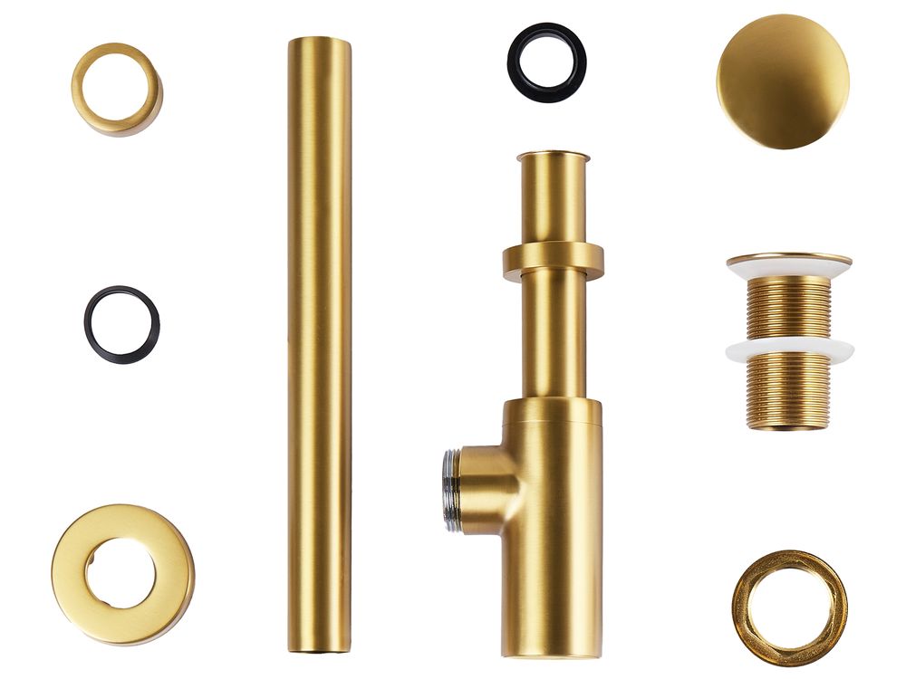 Sifone Bidet Set Sifone E Colonna Di Scarico Vasca Colore Oro Vicario KITVICARIO3 Scarico Lavandino Bagno Il sifone si adatta a tutti i lavelli con foro di scarico standard da 45 mm. Il set include tutti i dadi e le guarnizioni necessari per il montaggio e l'uso. Aggiungi un tocco di stile al tuo bagno con questo elegante sifone a bottiglia in ottone, progettato per adattarsi perfettamente alla maggior parte dei lavabi standard. Completato da una piletta click-clack coordinata, unisce praticità ed eleganza - l’ideale per interni moderni Aggiungiamo uno scarico click-clack gratuitamente!